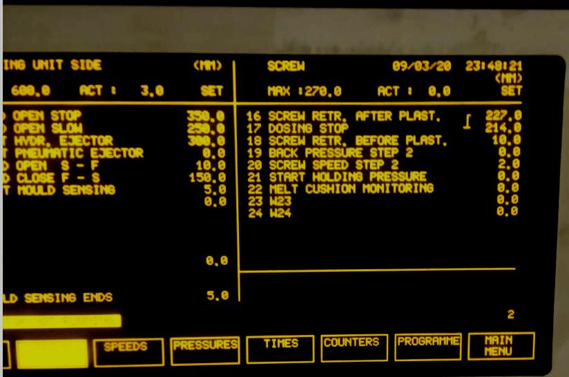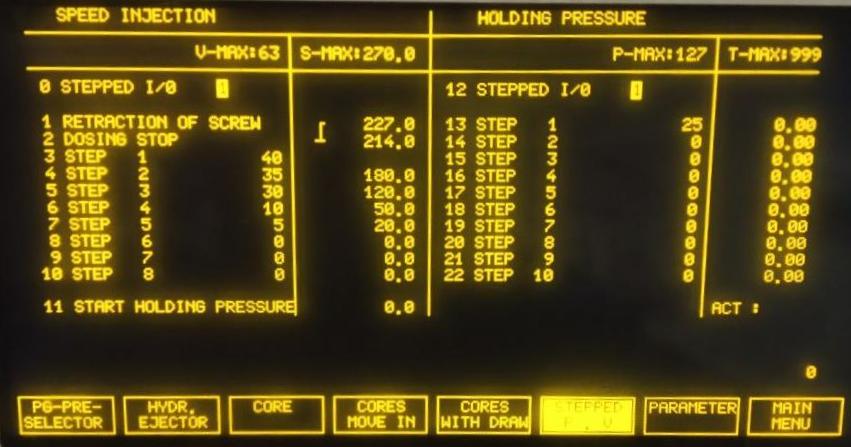 С вашего позволения , поучаствую. Если всё таки дело в установках и не в инженерных , все программы идентичны на машине? Или это одна на все случаи ? Насчёт давления впрыска . Как я понял , работаем на почти полной скорости и ограничиваем давление ? Странно как-то. При таком давлении скорость должна быть минимальной. Чем выше скорость тем выше давление нужно машине , чтоб заполнить форму. Но это другой вопрос . Чтобы из за этого всего сбивалась 0 точка, сомнительно. А вообще , есть ли возможность на этом агрегате пустить Trokenlauf. Не знаю как назвать . В холостую , на автомате, что ли . Без впрыска и лучше , не подводя шнек. Или это уже было и я пропустил?