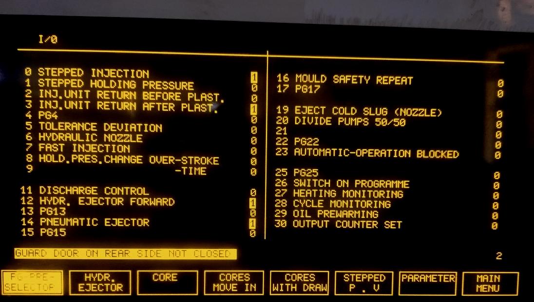 Такое бывало и у нас. Но контроллер, чаще всего, не при чем. Датчики ограждения имели плохой контакт. В Минске коррекция путей принимается и подтверждается. Сброс идет в процессе цикла. Пока не пойму причину. Если при смыкании - это одно, если при впрыске - это другое. Простейшая причина: абсурдные установки параметров. Разве можно задавать пошаговое бэк прэшер за пределами максимального пути шнека? Контроллер мозг себе поломает, как это выполнить. И такие случаи бывали и у нас. По-хорошему все установки надо просмотреть, оценить логичность выполнения цикла.agent_serg писал(а): ↑13 мар 2020, 07:41Бывали случаи, когда ничего не могли сделать, не вводились единички в таблице путей.