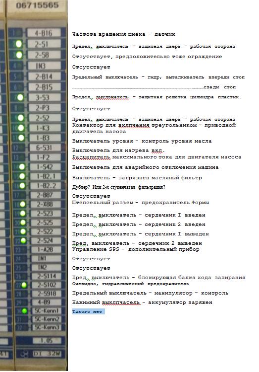 Схемы у вас имеются? Мне надо точно знать соответствие обозначения входов с начальными цифрами 1 и 2 в схеме и их назначение. В инструкции должно быть. С моими, кажется, не совпадают. Проверить надо. Первым делом прочитаем индикацию годного состояния, а вы ещё дайте состояние вх-вых при сбое. Тогда и сравним.