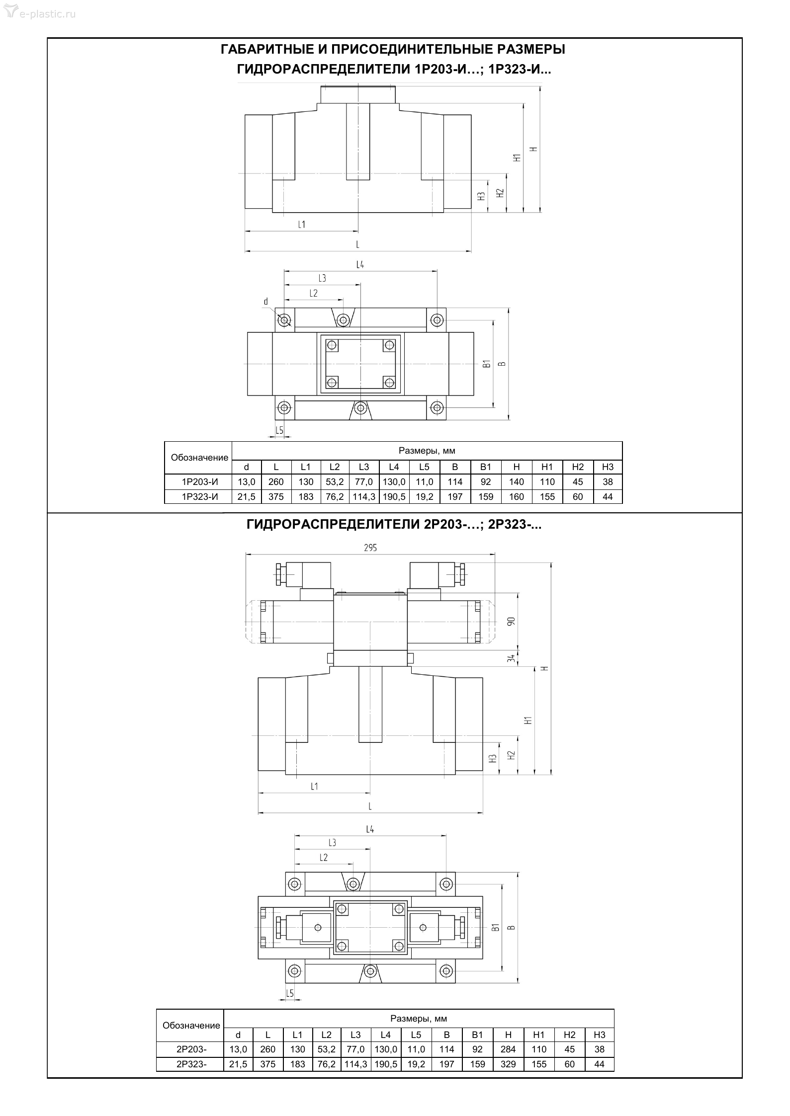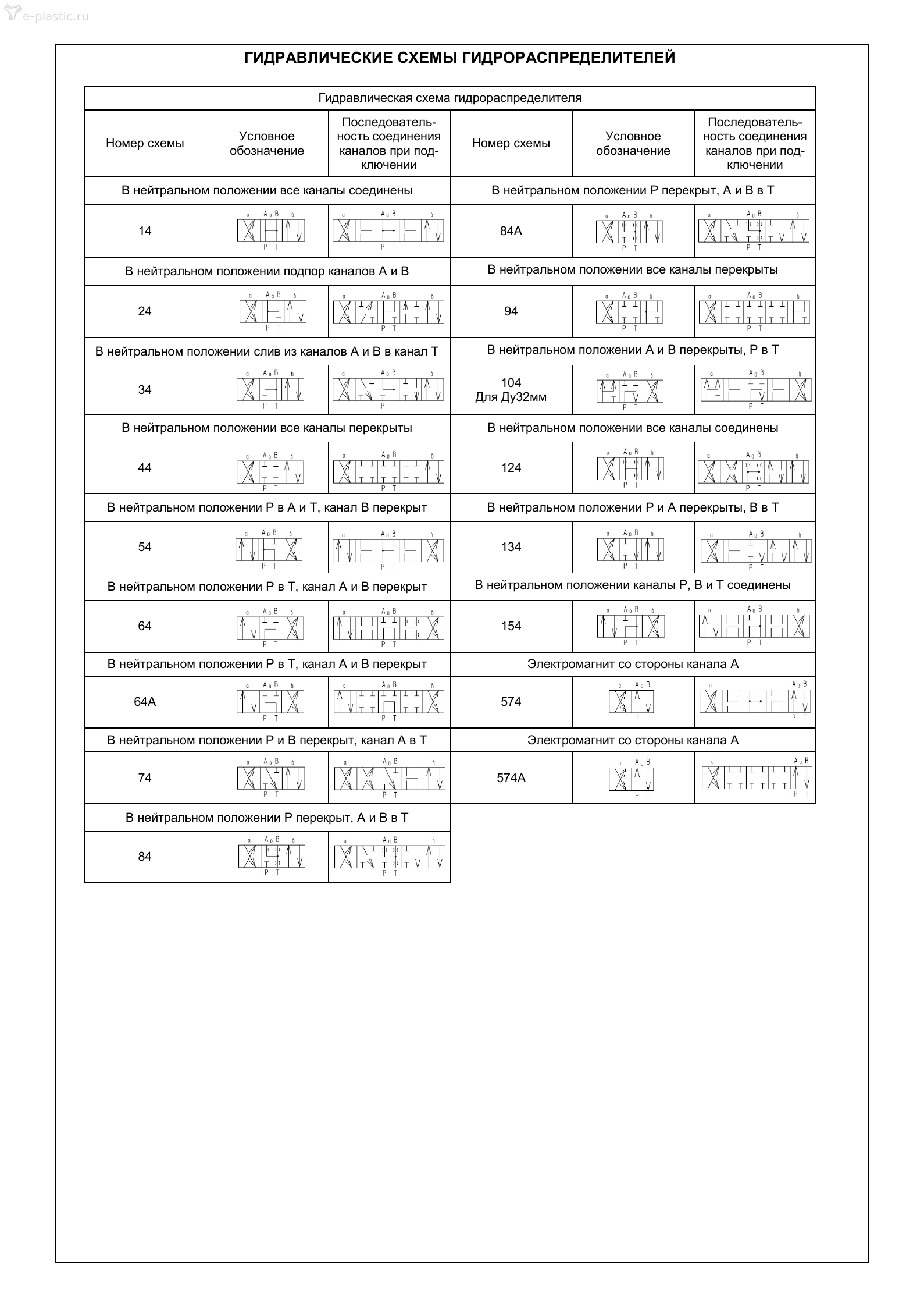 Ваш код для заказа: 1Р-203-АЛ-1-74-Г24Н(В0.8мм)-УХЛ4. 1- пилот ВЕ6. ДУ- 6мм; 20- условный проход; 3-Давление 320 кг/см кв.; А- пружинный возврат. ; Л- вид управления с двумя э/м с пружинным возвратом золотника пилота.; 1- поток управления вход не зависимый, слив не зависимый ( видно из схемы ТПА) ; 74- схема распределения потока большого золотника Р и В изолированы, А и Т обьединены.; Г24 - 24 вольта.; Н- кнопки в электромагниты ручного вкл.; В 0,8 - жиклёр в канале Р пилота 0,8мм. ( Заменяет шарик у немцев) Для удержания золотника большого в крайних положениях в случае просадки давления в системе в момент движений ; УХЛ4- климатическое расположение. Сохрани в ремонтной карте. Твой точь в точь такой же. Мировой стандарт. Крепеж по координатам совпадет.