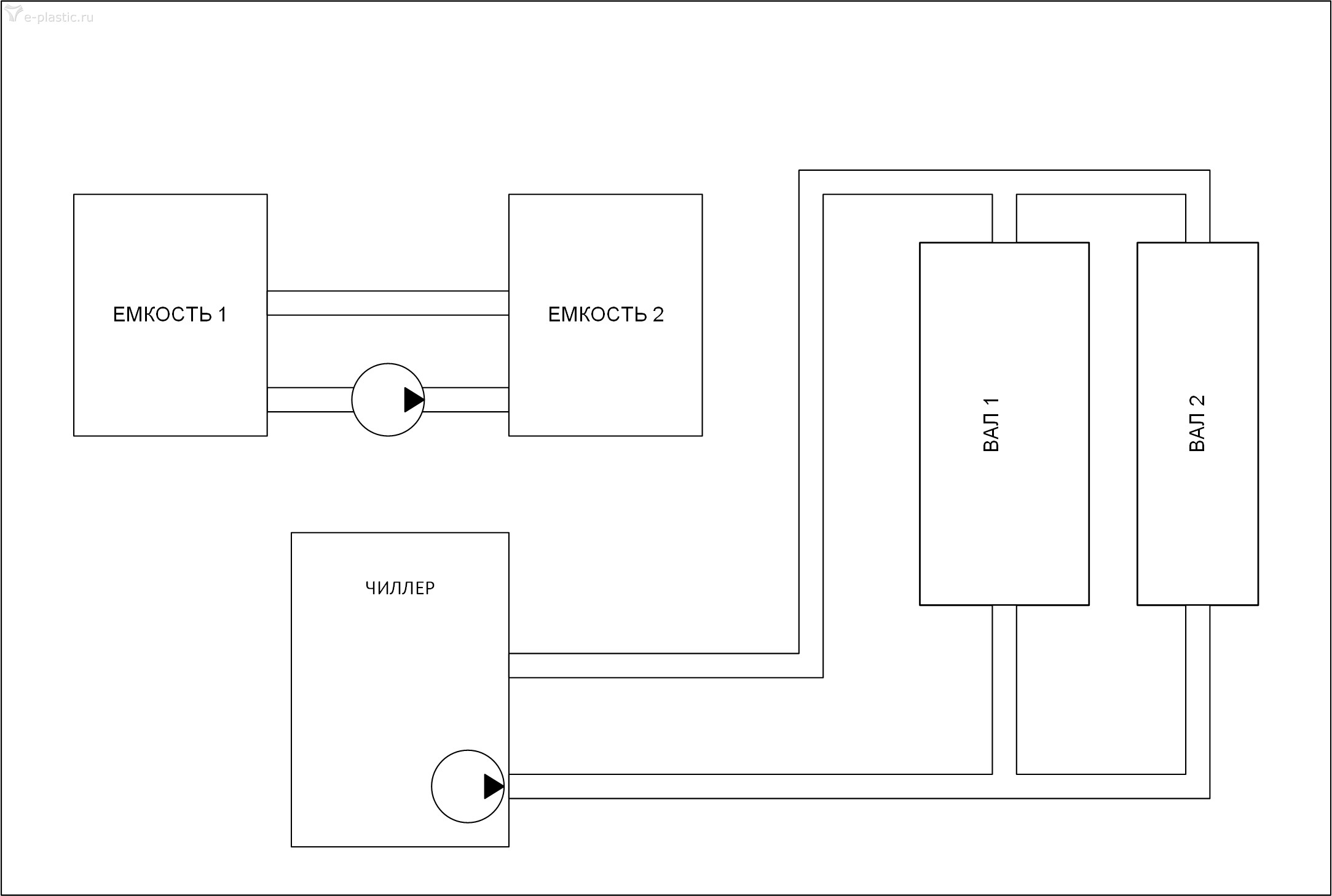 - Чилер, труба, два вала, и труба обратно в чилер;