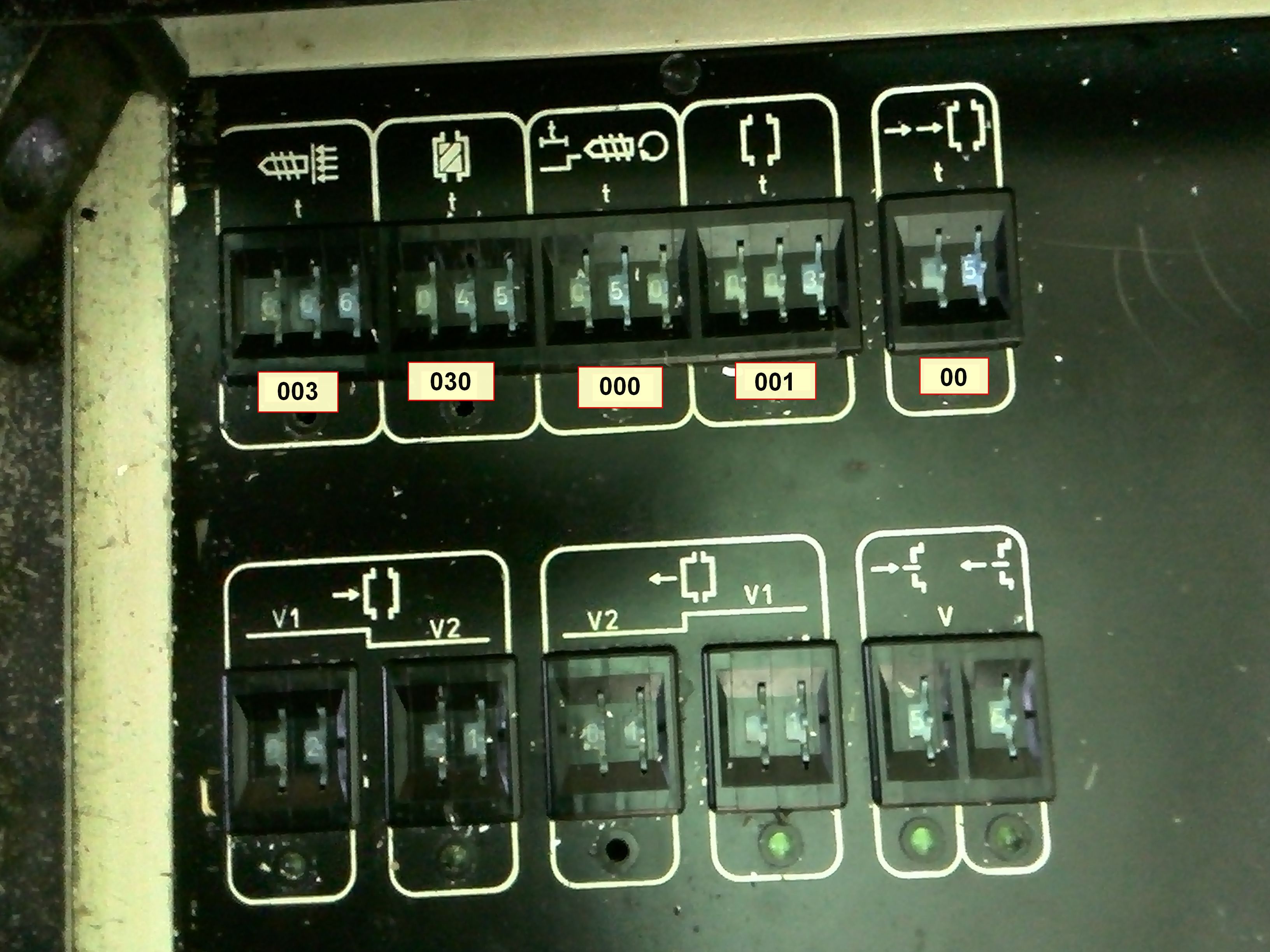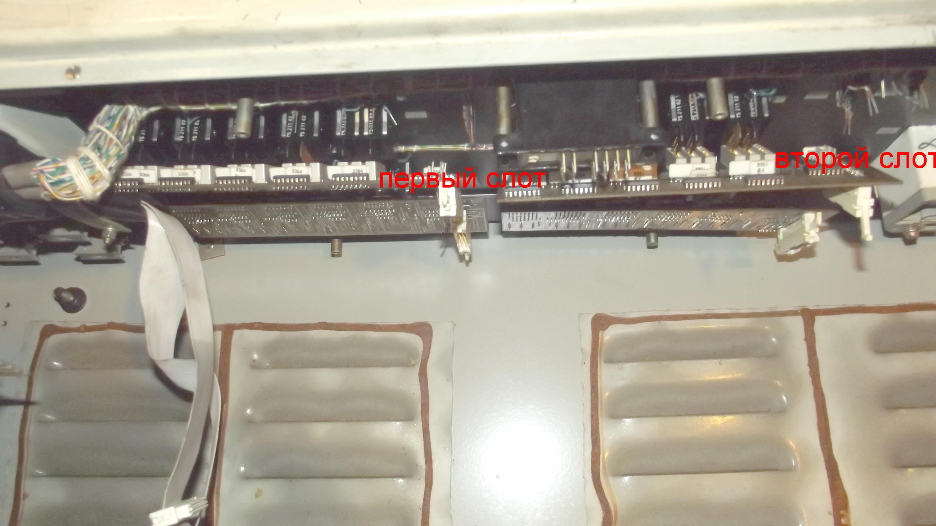 Подскажите, пожалуйста, как правильно вставить платы, соединяющиеся с задатчиками (декадниками), Отсчет начинаю справа. На заводе все первые правые планки контактов задатчиков вставлялись в первые правые слоты плат (правда станок тот был разобран на запчасти, а по уверениям он был работоспособный, но и этот станок, по уверениям должен был сразу заработать). У меня 1 из плат первой правой планкой контактов вставлена была во второй слот (считая справа).