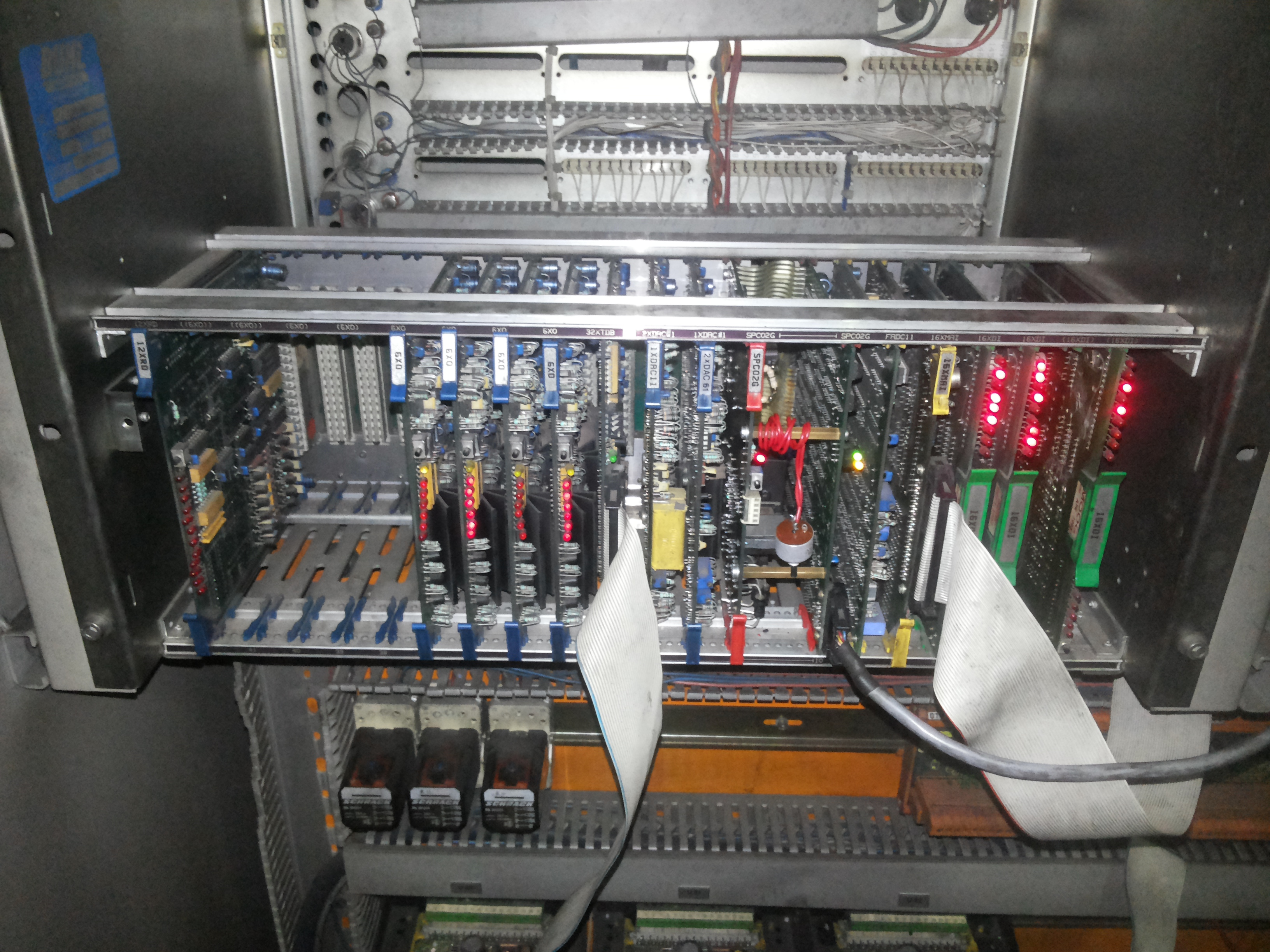 Кабель связи контроллера с процессором "живой". Светодиоды горят. 0 звонится на разъемы плат. А не может быть такое, что неправильно идет преобразование аналога в цифру? Решили по проводам отследить куда идет провод с реле К8, вышли на FADC01. Там стоит АЦП. ТПА к нам пришел уже не очень. Схемы есть. Как то так.