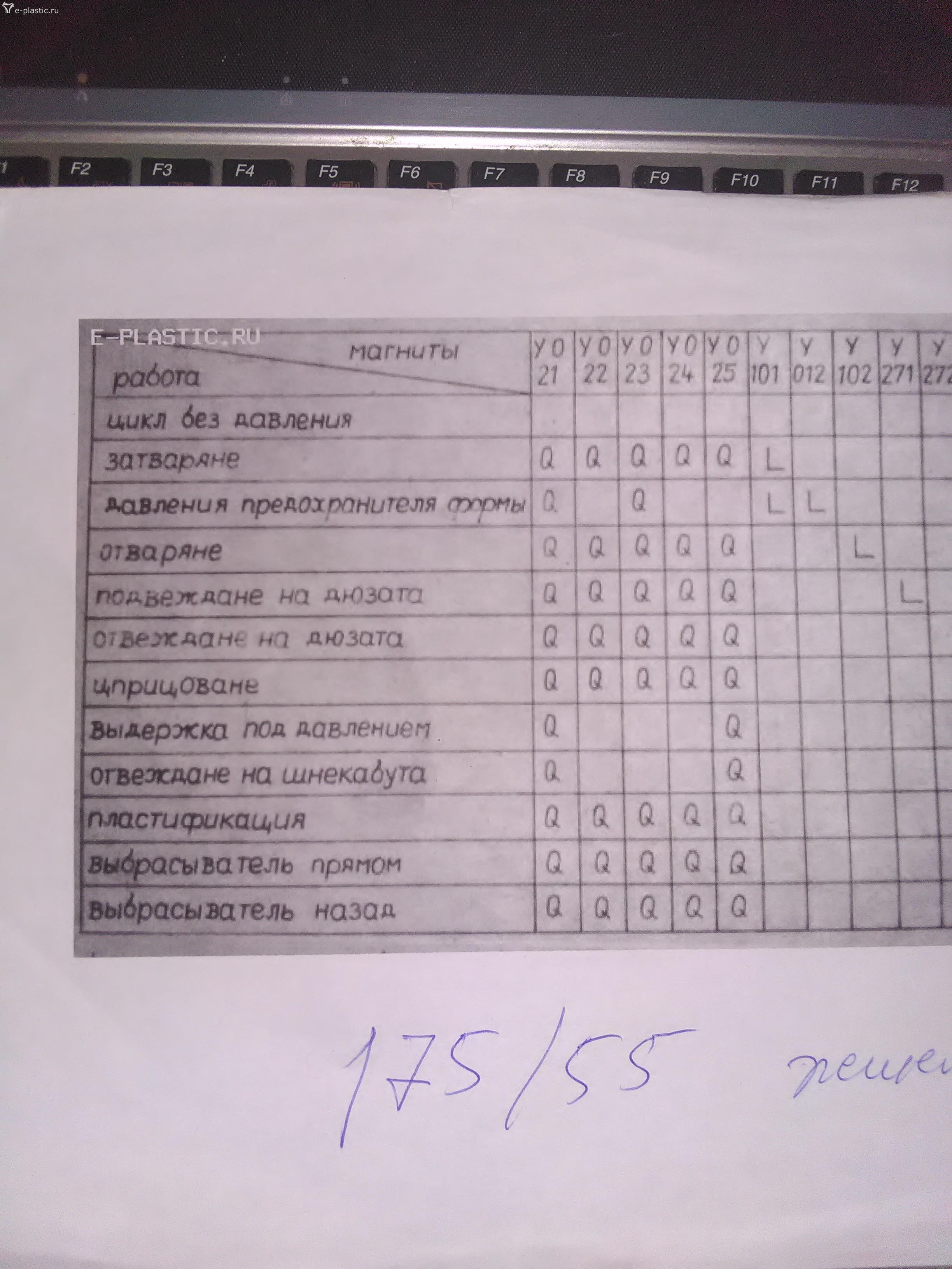 Уважаемые зрители посмотрите на циклограмму и блок гидравлики по скоростям обеспечивающий желаемые движения и как тут можно прилепить ЧАСТОТНИК. И смысл его установки на коротких циклах. Просветите мой средний ум. этот листок говорит о том что 95 литров насоса разбиты на 17 шагов комбинаций. По 5,5 литров шаг. Но это другая история. Думаю пока не до нее. еще три листика размещу с тех характеристиками станка. Подчеркну это не обычный вариант ТПА.