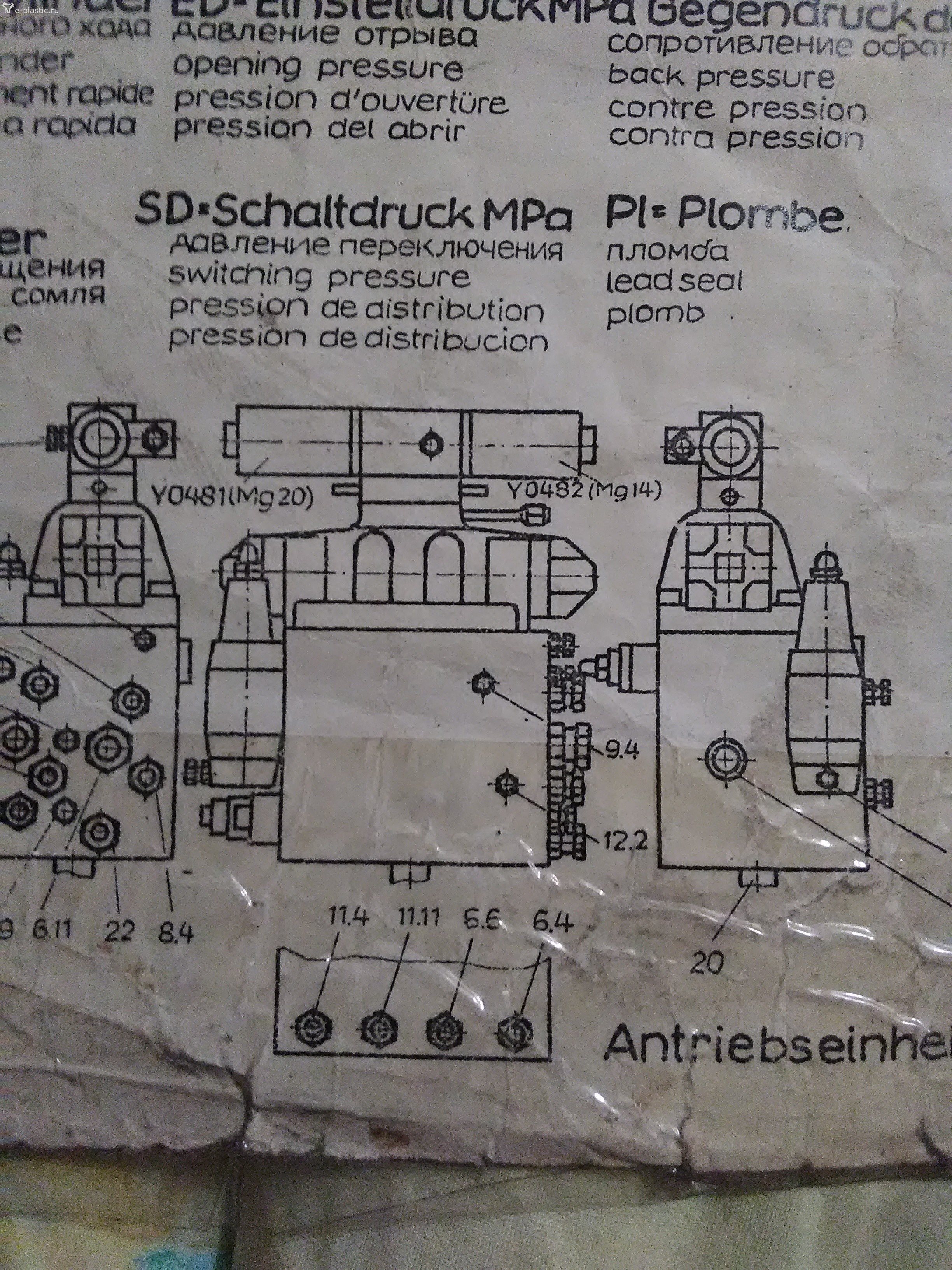 С твоих слов по телефону у тебя в цикле по окончании впрыска давление прижима сопла и впрыска падает до нуля и сопло отбрасывает силой пластика на 8мм, за тем идет набор материала и давления прижима появляется но наладочное по настройке VD2.Естественно подлив. Так быть не должно. Высокое давление прижима сопла должно держаться до конца набора материала. А значит и магнит 271-й должен быть включен до конца набора. Так как согласно схемы распределителя при выключенном 271 давление упадет до нуля (прижим сопла) В нейтрали 271-272 напорная линия Р связана с баком Т. ТЕПЕРЬ По проверке по манометрам. Получили результат: Левый манометр соскочил на ноль на правом увидели высокое давление прижима сопла. Хорошо. Теперь задача что бы оно держалось в цилиндрах прижима сопла до конца набора материала, чего добиться на потрепанных ТПА трудно. О чем мечтает каждый из вас и нас. При поиске высокого давления прижима сопла, мы сознательно опустили некоторые причины отсутствия или низкое давление прижима сопла. А это: 1) Манжеты в цилиндрах М3.1 и М3.2 Перепуск через поршня недопустим даже не большой. 2) Ключевой момент VR8. При падении давления в напорной линии Прижима формы и прижима сопла по каким либо причинам в процессе цикла, в цилиндрах прижима сопла должно оставаться держаться высокое давление которое создалось с начала цикла. А унас с этим плохо. Могу предположить из практики: Что, манжеты травят, золотники перепускают, VR8 (квадратный обратник седло проверить на керосин) 3) Ну и остальные аппараты по пути не должны проливать в дренажные каналы. Если удастся обеспечить падение давления прижима сопла до конца набора на 50% от ста атмосфер то уже радость. При не высоком (подпоре) динамическом давлении, подливов не будет. 100% задачу не решить. Ремонт, замена аппаратуры.sovi писал(а): ↑29 ноя 2022, 20:31По совету Вячеслава проверил VR1 там и вправду был небольшой засор . Трудности с этим клапаном почти не было обошёлся без съемника , помогли круглогубцы обратные. Так же разобрал VD 2 там тоже гранула была VDr16 VDr2 оказались чистыми. В итоге появилось высокое давление поджима формы дл 9 МПа , но торпеду отжимает все равно. Завтра По совету Вячеслава надо проверить в цикле работу 271 магнита когда включается он. Проверю отпишусь сразу.