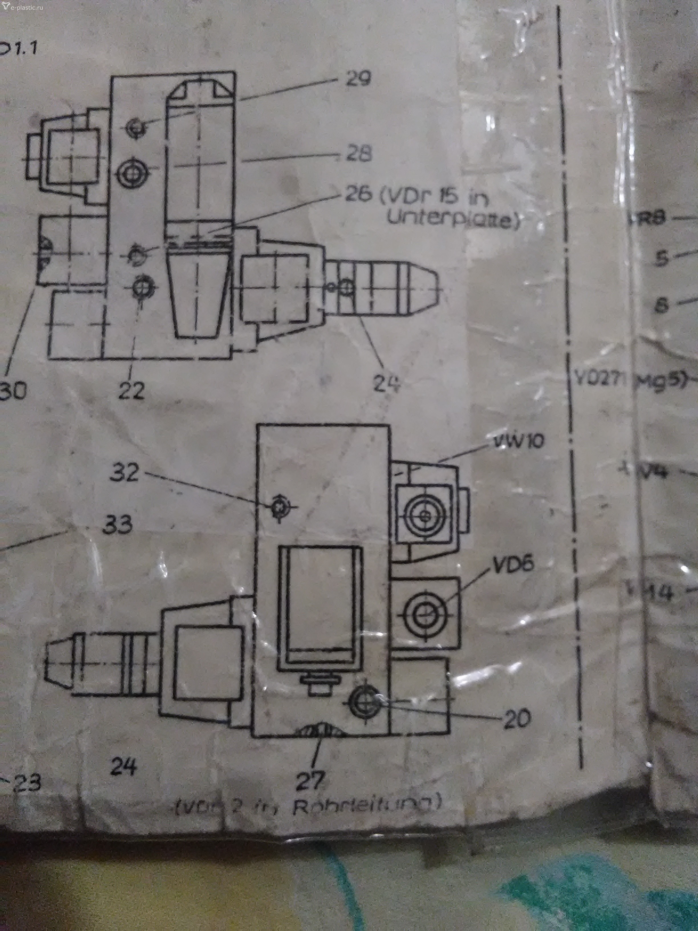 По совету Вячеслава проверил VR1 там и вправду был небольшой засор . Трудности с этим клапаном почти не было обошёлся без съемника , помогли круглогубцы обратные. Так же разобрал VD 2 там тоже гранула была VDr16 VDr2 оказались чистыми. В итоге появилось высокое давление поджима формы дл 9 МПа , но торпеду отжимает все равно. Завтра По совету Вячеслава надо проверить в цикле работу 271 магнита когда включается он. Проверю отпишусь сразу.