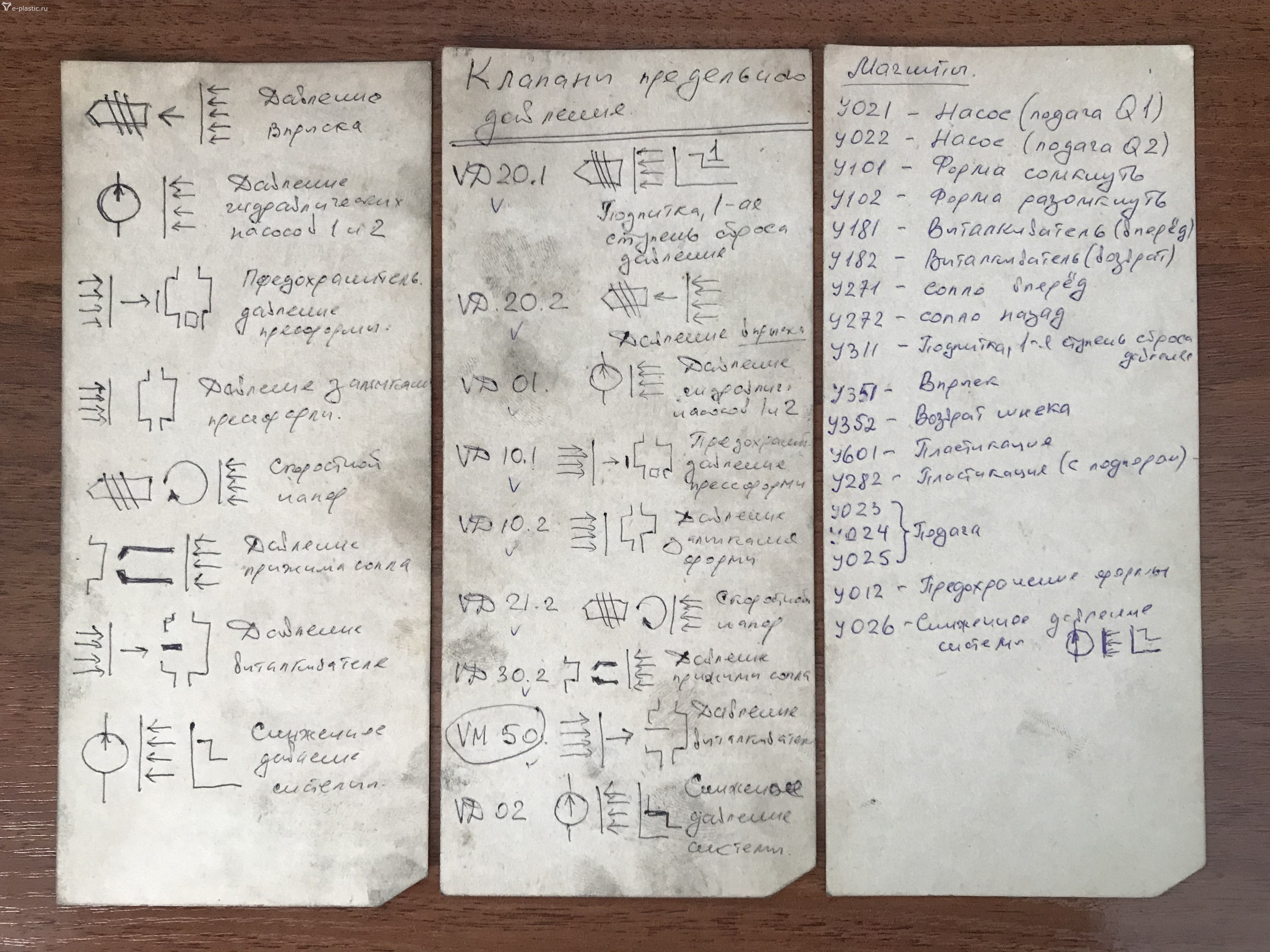 То есть, если на левом манометре в момент цикла постоянно показывает в цикле давление настройки VD2 прижим сопла , это говорит о том что линия высокого давления не исправна. Что делают те кому надо лить? Задирают давление на VD2 до 80-100 и работают уничтожая насос шестереньчатый, где разрешённый максимум на что рассчитан насос, 40 а по инструкции 25 кг см кв.ЗЮМ писал(а): ↑26 ноя 2022, 13:55Все очень просто. Но без понимания схемы невозможно. На прижим сопла работают две линии объединённые. Линия низкого давления и линия высокого давления. Линия низкого давления просто перемещает механизм впрыска ( сопло) А линия высокого давления давит в цикле от давления зажима формы. Отследить при исправных манометра легко. В цикле , манометр с правой стороны покажет или должен показать высокое давление условно а левый манометр должен соскочить на ноль. Это показывает что проблем нет. Если это не происходит. Лечим линию высокого давления. Причины сбоя на пальцах одной руки. Подумайте над схемой. Для правильного мышления.