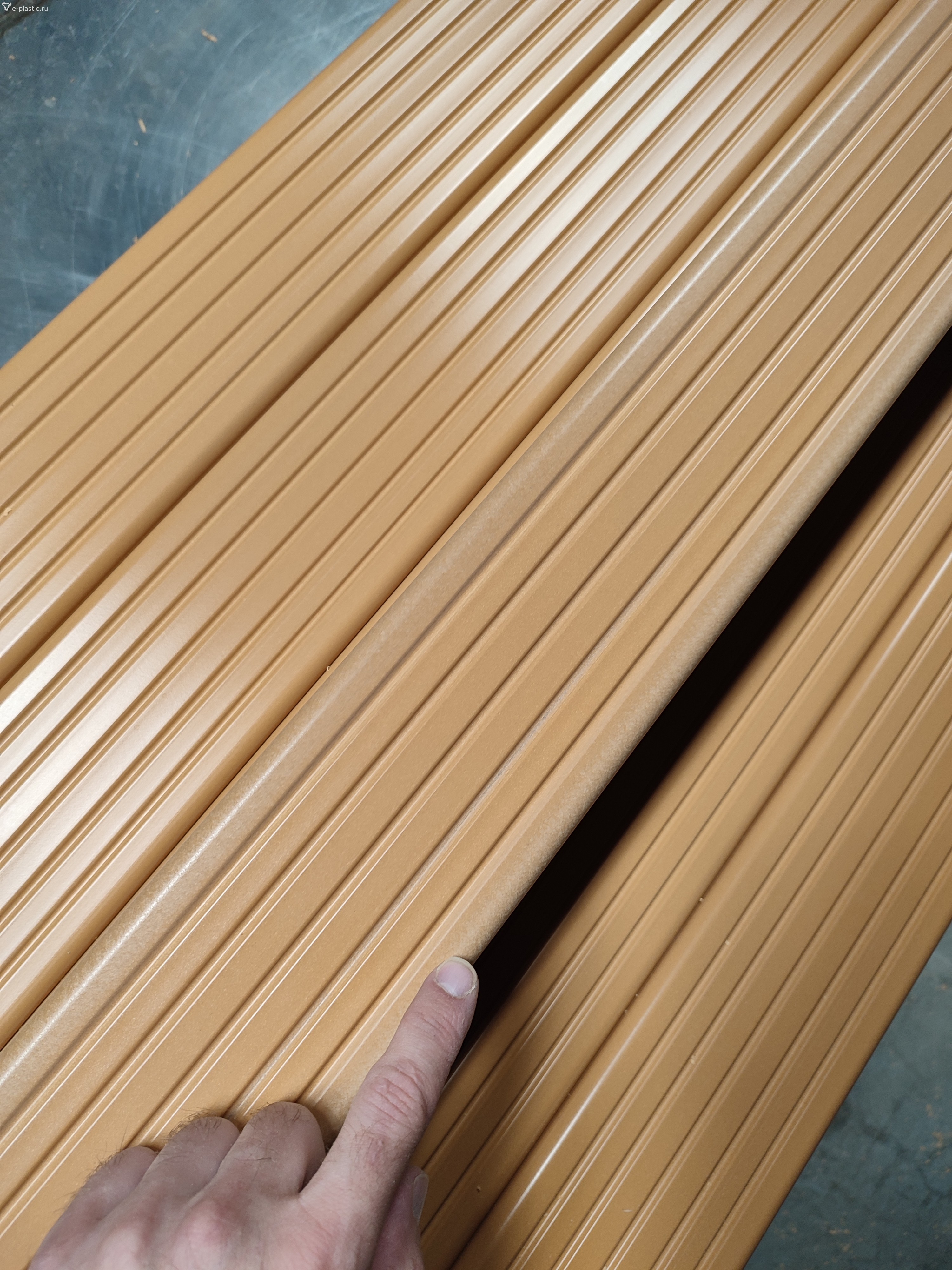 От "посветления" на углах изделия удалось избавиться наоборот понижением температуры на фильере до 175 градусов. Ранее было 185. При увеличении температуры поверхность изделия начинает терять внешний вид.