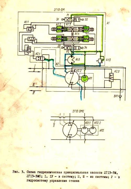 Что бы окончательно запутаться, есть версия о не правильном поведении НОЛЬ-золотника. Обозначен на схеме как А2.1 Не хватает силенок что бы удержать тупиковое переключение разделяющее нагнетание от всасывания. Если этого условия не будет то и давления не видать так как может объединять нагнетание со всасыванием. Надо описание штудировать. Кстати там чуть повыше над А2.1 есть еще распределители три шт. Вот они если не двигаются или грязь там то же все будет с перебоями. Как то достовали их в диске из под пробок. где то эскиз был поищу.