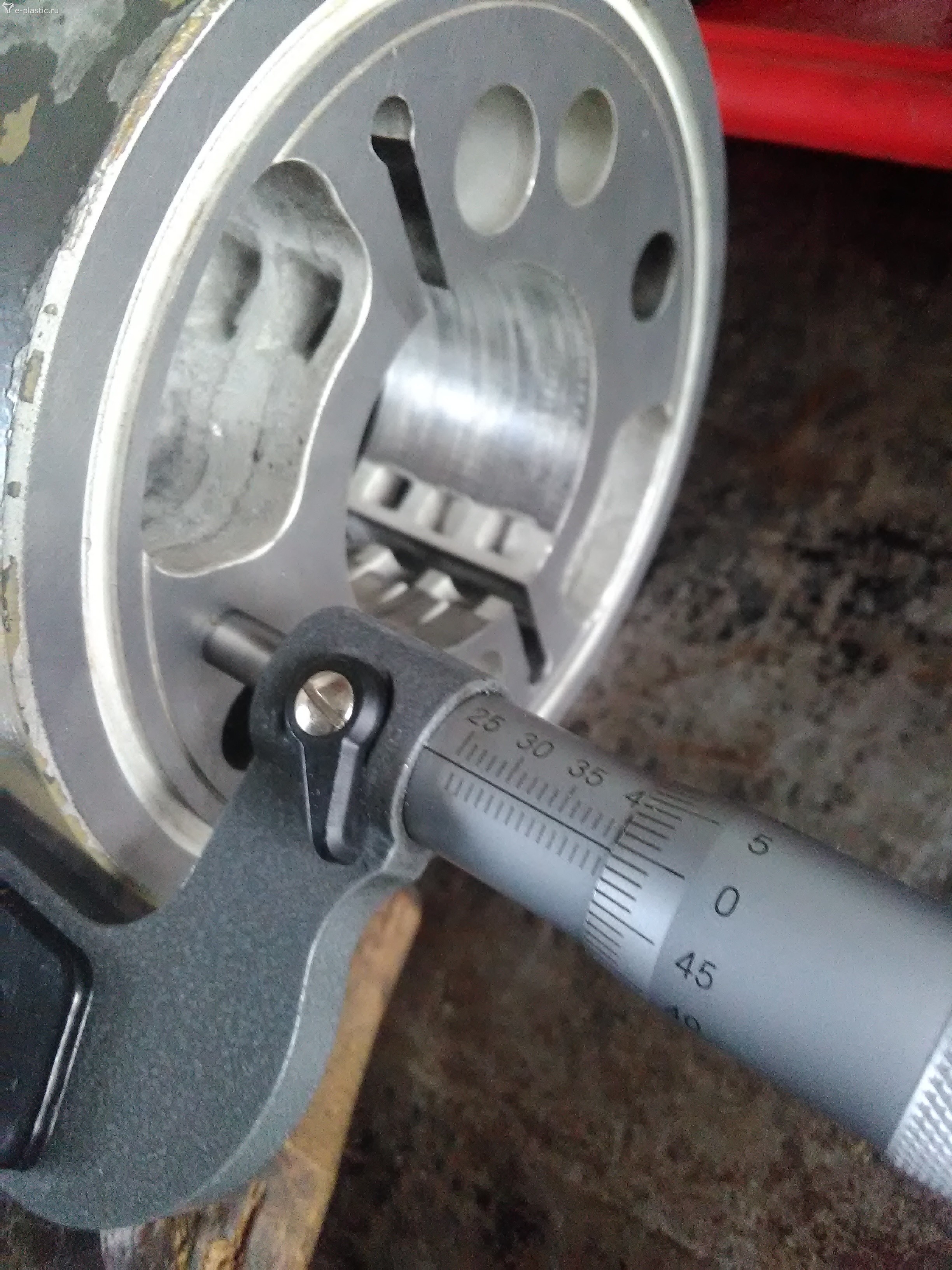 Теперь о зазорах, замерах, облагораживании деталей. Заусенцы, геметрия. Притирка после правильной шлифовки. Отталкивается и берём за базу самую ценную деталь, диск толщиной 20 мм 17 литрового насоса и 40мм 70 литрового. Диски в нолях. 20. Особое внимание пазам где ходят пластины. Если разбило края , пластину будет косить и клинить. Паз должен быть прямолинейным. Пружинки поджимают пластины для обеспечения забора и нагнетания масла на старте, далее пластины они же плоские золотники подчиняются потоку нагнетания, который давит в тыльную сторону торец касания пружины и чем выше давление, тем конкретнее пластина прилегает к кулачку и шансов отойти от кулачкового элепса у нее нет. Если слышим треск и пульсацию на манометре это значит пластина прыгает, из за подклинивания в пазу Иза повышенного трения, перекоса, и бороздок следов от задиров. Это видно не вооружонным глазом. Это финишь, быбрасывать и не пытаться запустить насос. Тут видим наш диск 40-0,005. Пусть 40 в нолях. Пазы и пластины не ах но по работают. Стенд покажет и время. Переходим к кулачкам элепсам. Должны быть 39,97 у нового. У нас 39,95 зазор будет 0.025 на сторону. Уже не очень. А у малого 17л у нас уже и все три сотки на сторону. Чревато потерями и нагревом масла. Керосин налитый в канал нагнетания убегает веселей. К этому вернёмся. Осмотрев остальные поверхности признаем годными к работе. У малого насоса который задрало, после снятия наклепа, путём притирки толщина просела на 0,06. А это уже три сотки на сторону. Напрашивается Притирка базового диска и пластин, долго и упорно. Либо микрошлифовка асса. Чтобы влезть в зазор 0,015-0,02. На малых литражах это принципиально очень даже.