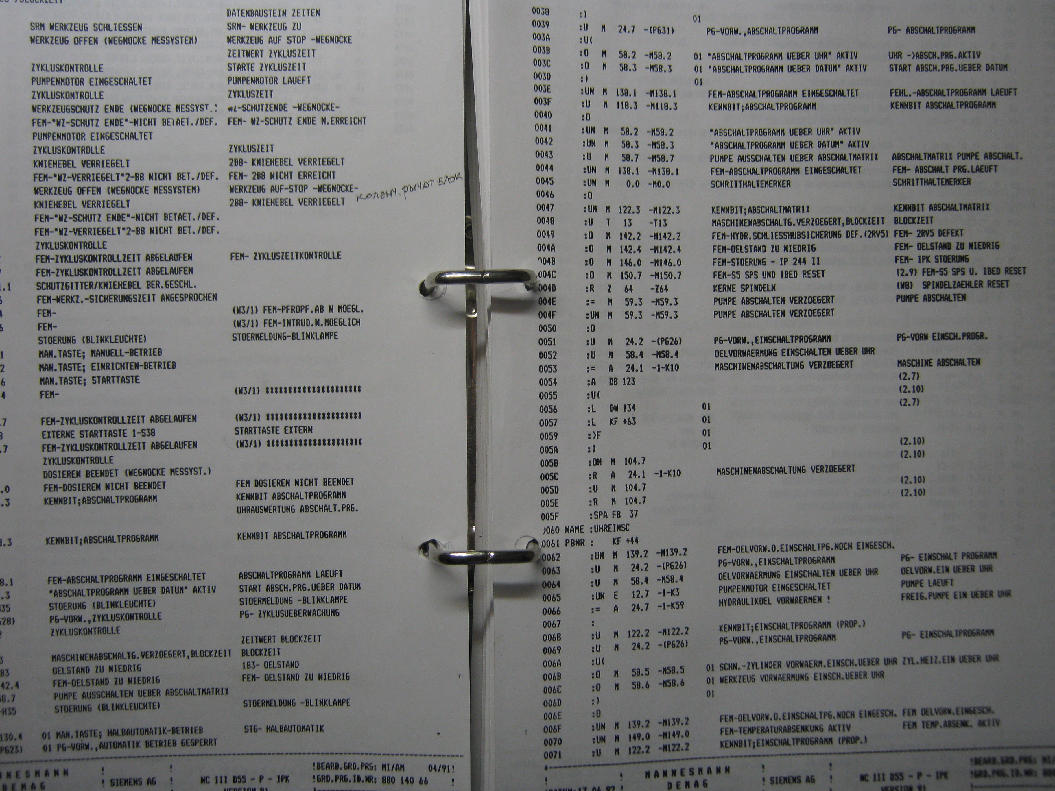 Мы в комплекте документации получили листинг программы, где при желании можно разобраться в логике софта. Для примера даю кусочек.agent_serg писал(а): ↑18 июл 2020, 21:24DB - это блок данных из языка программирования STEP 5, на котором написана программа для SIMATIC.