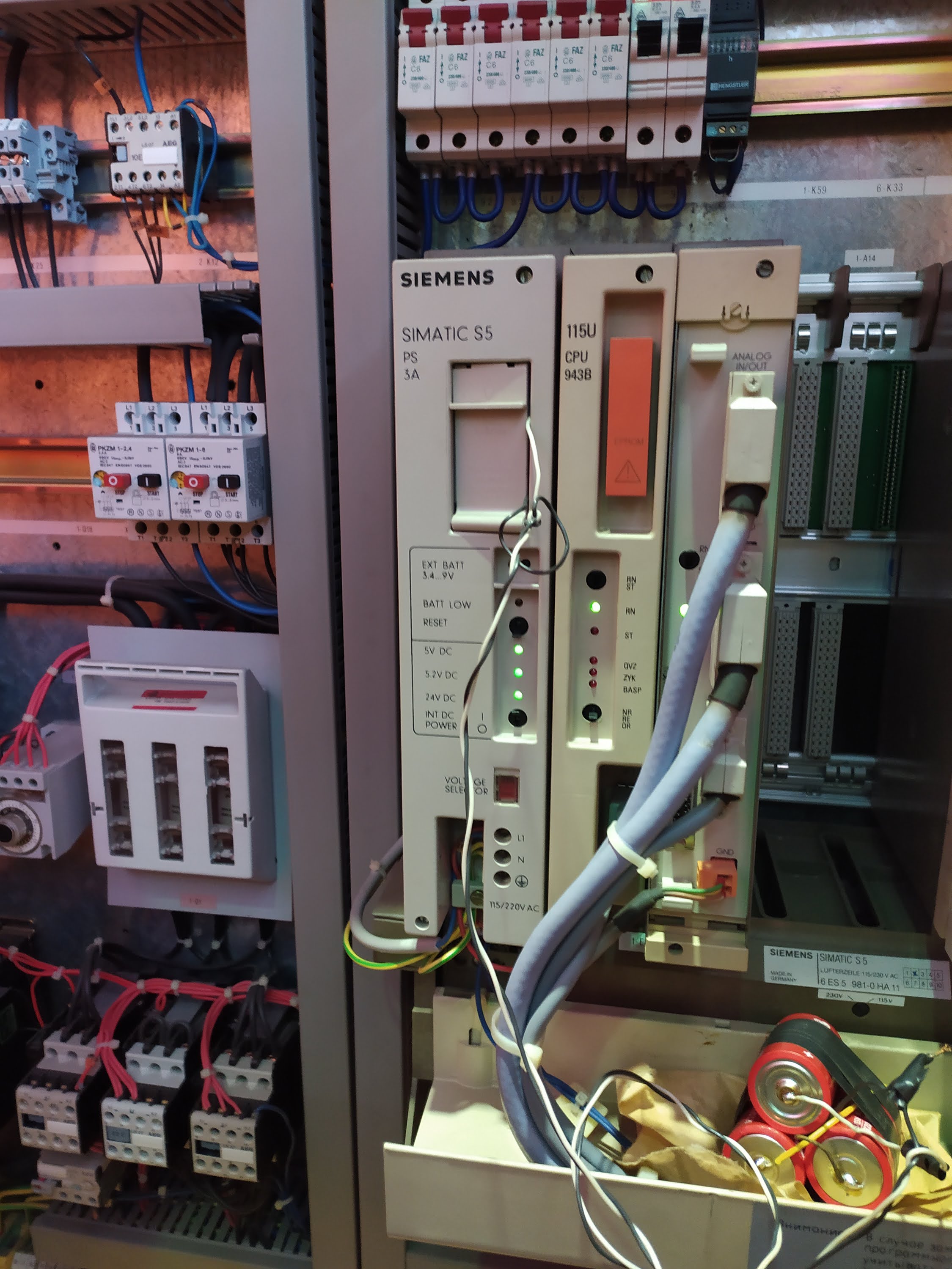 Артур, машина 92-го года, там, скорее всего NCIII с Simatic S5-115U. В контроллере вставной модуль памяти (см. фото), который по-старинке инициализируется тумблерами на фасаде платы CPU. А на модуле 2 Эпрома. Модуль уникальный для машины. Попытки переставить его с машины на машину ведут к неустойчивой работе и не рекомендуются. Кстати, этот момент при покупке надо отследить - номер на модуле вверху должен совпадать с номером машины. Квинта - это важно!