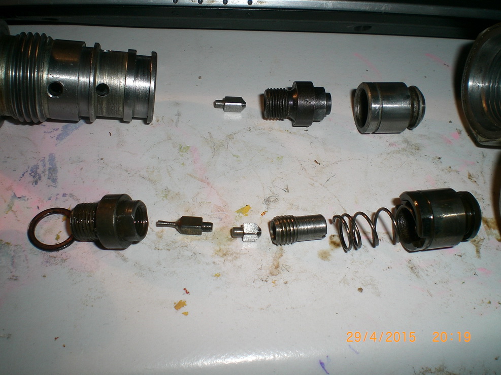 На нижнем нет толкателя управляющего поршня, мелкой пружинки и пружинки возврата упр. поршня. Но стоят рядом еще два на очереди разборки. Надеюсь там все на месте. Ну и осталось полную комплектацию: Сфотографировать, разобрать сначала, и я тут уберу свой чемоданчик