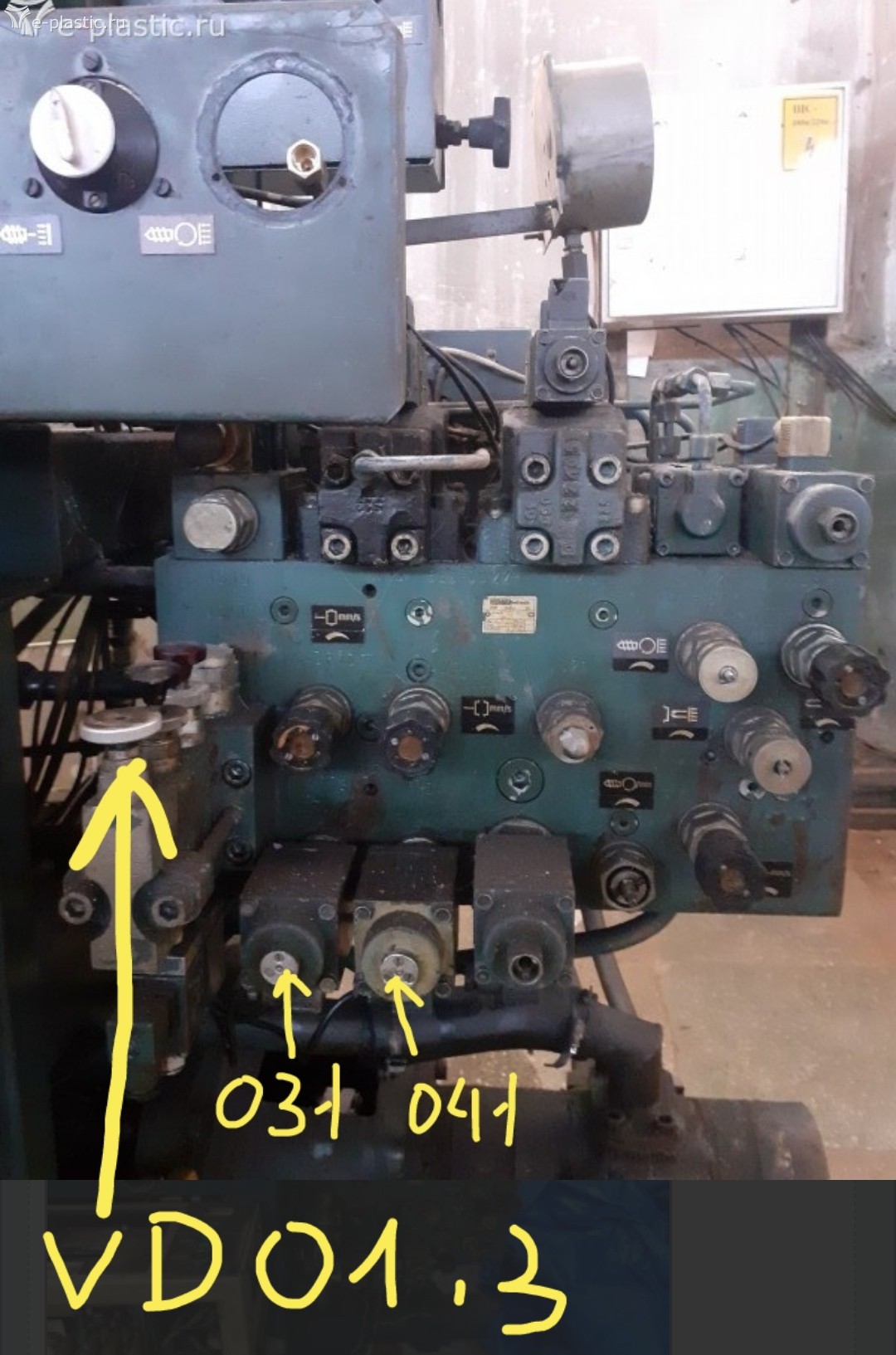 VD 01,3 должен быть опломбирован в оригинале. А здесь вентиль. Ну да ладно, если будет работать, пусть работает. Его надо выкрутить полностью. На переключателе манометра включить общее давление. Включить машину. Нажать на магнит 031 по центру чем нибудь тонким (3-4мм в диаметре). И закручивать VD01,3 пока на манометре не появятся данные! По паспорту 145. По факту может и все 200. А может от силы 50.