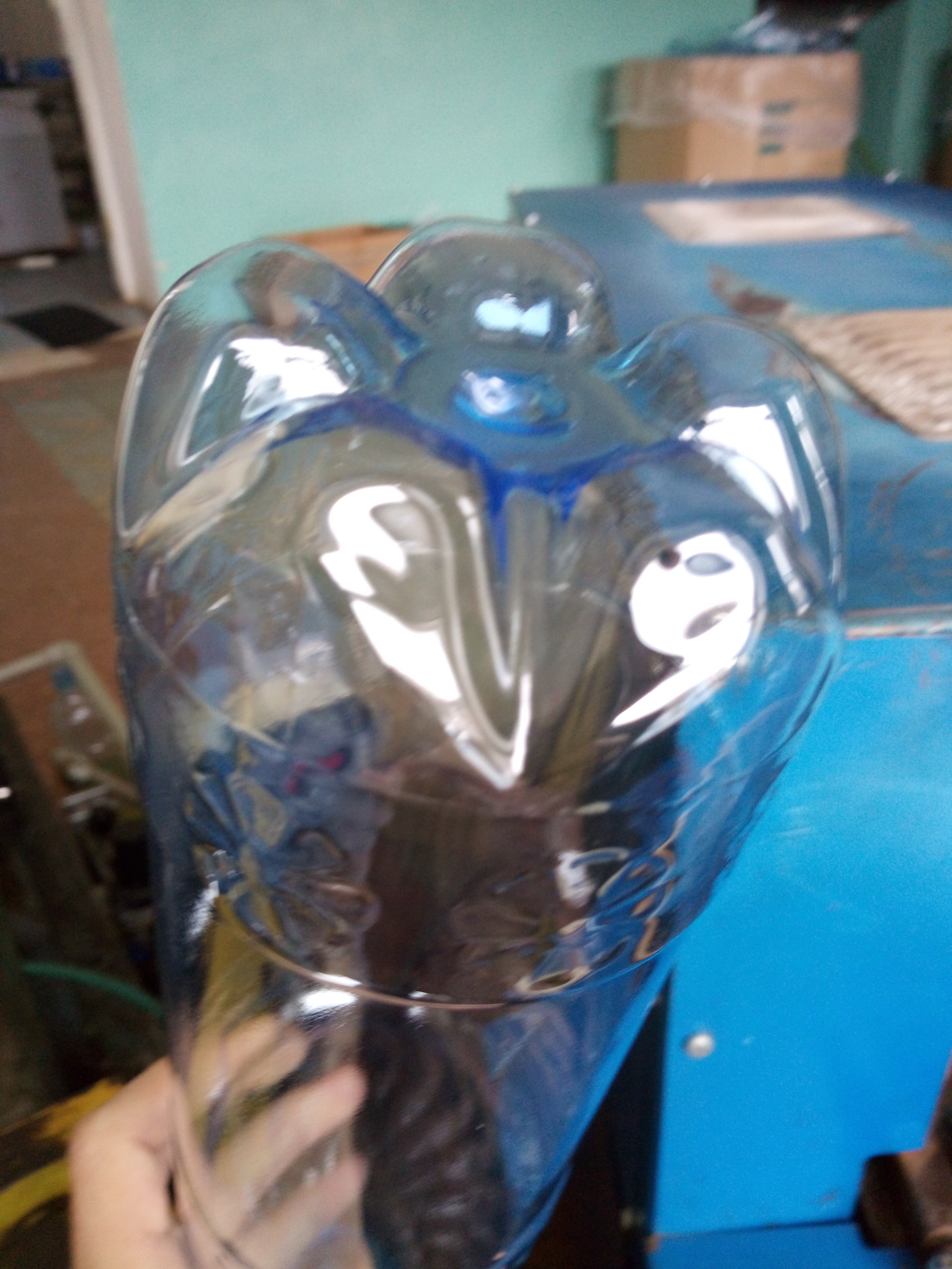 я еще не пробовал разрезать бутылку и смотреть толщину материала на дне.но скорее всего те бутылки которые не бахают там скорее всего материала меньше на дне чем на тех которые бахали.и возможно что такое количество материала (как на тех фото с дефектом)образуется из за перегрева преформы в тот момент когда скачет напруга.преформа бывает в этот момент выезжает слегка помутневшая где то посередине и наверное происходит кристализация и более хрупкое дно.