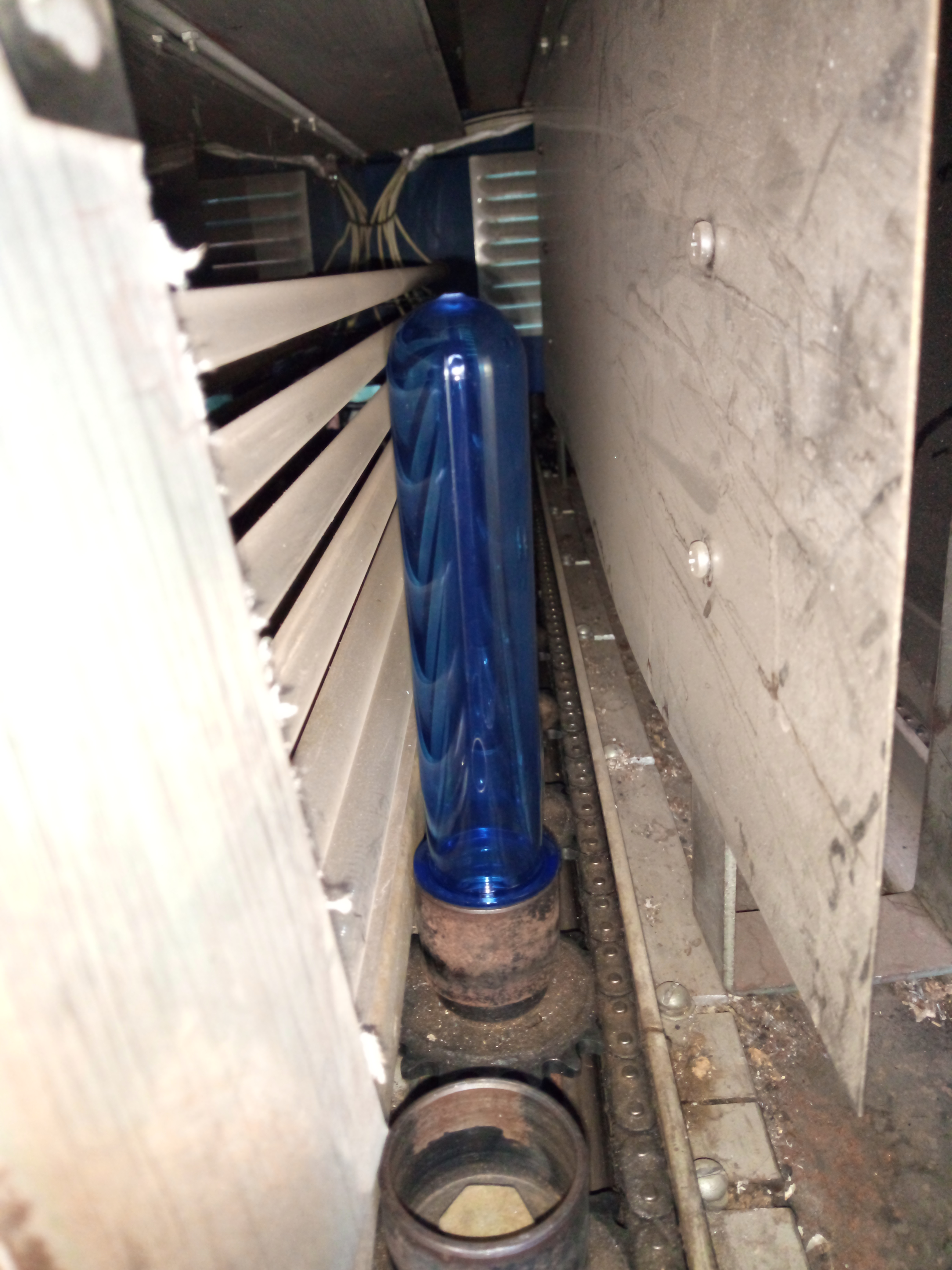 бывает что преформа выезжает из печи слегка побелевшая где то ближе к середине,но ее не скидывают а дуют все равно.может такие бутылки и бахают?Избыток материала в донной части из-за перегрева середины