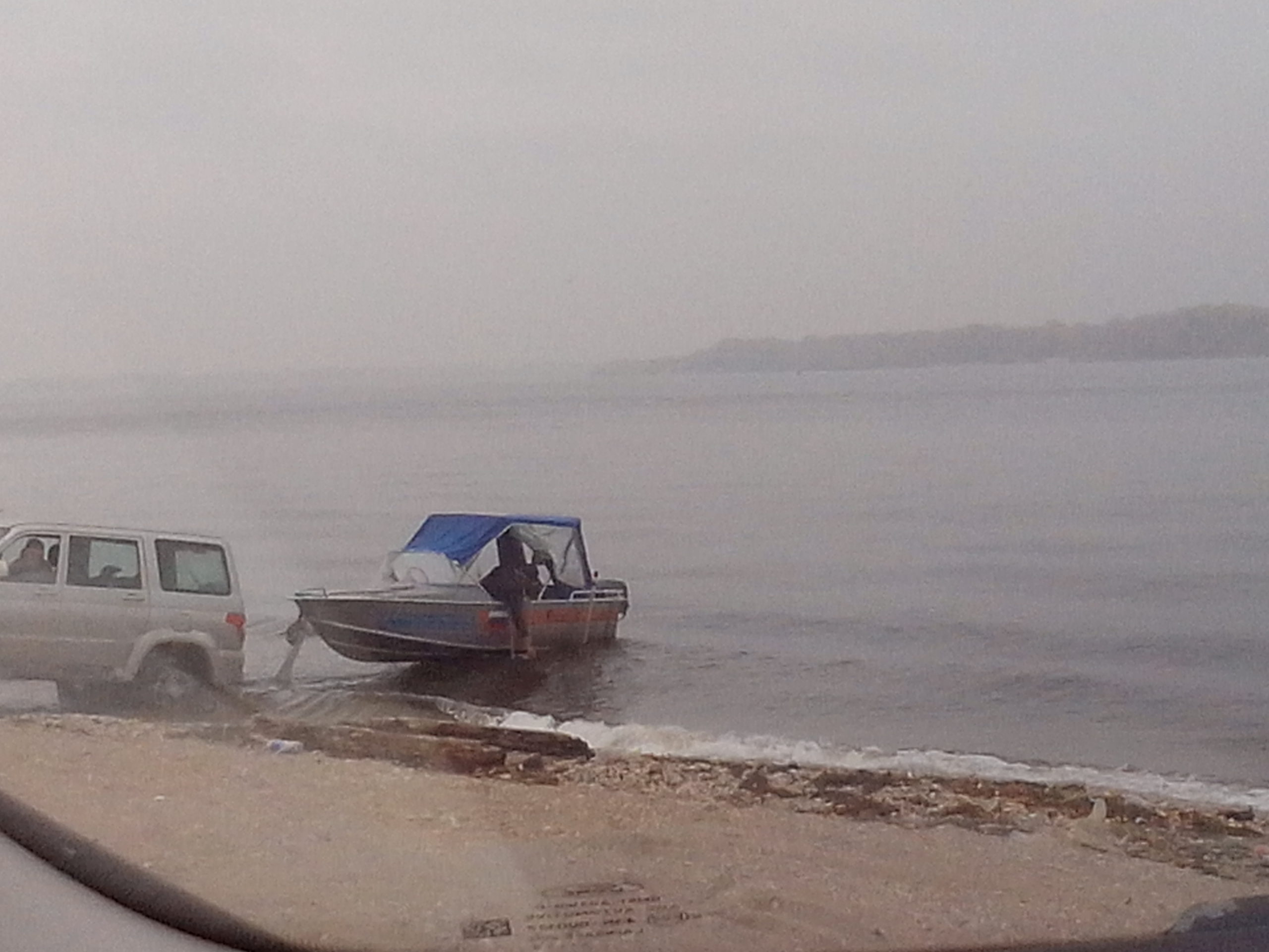 Не вылезая из машины, не спуская катера на воду.