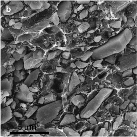 Образцы получены охлаждением композита в жидком азоте и хрупким разрушением.