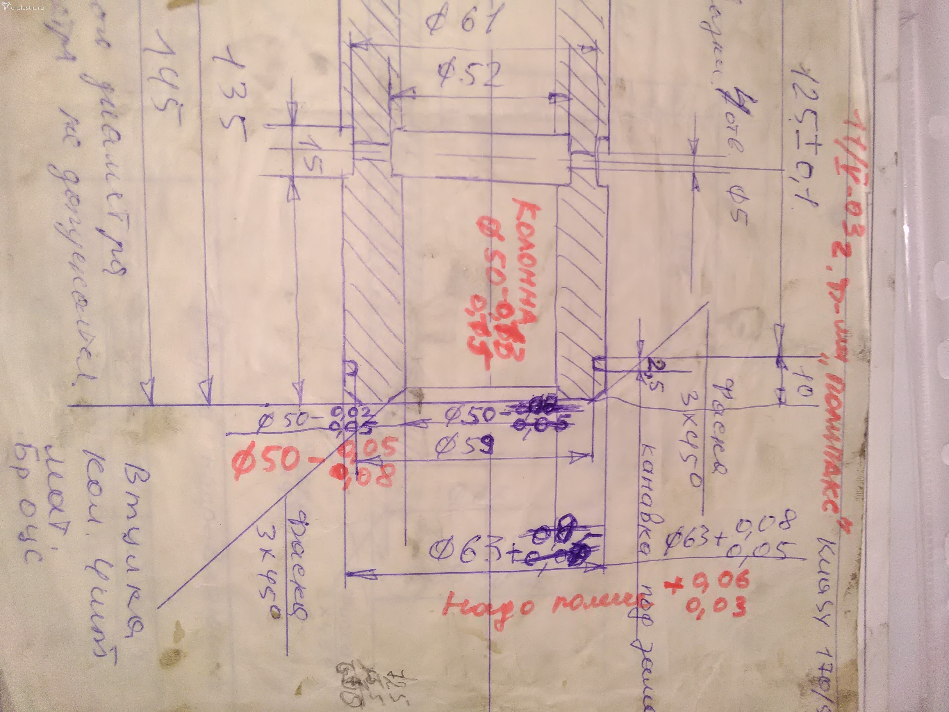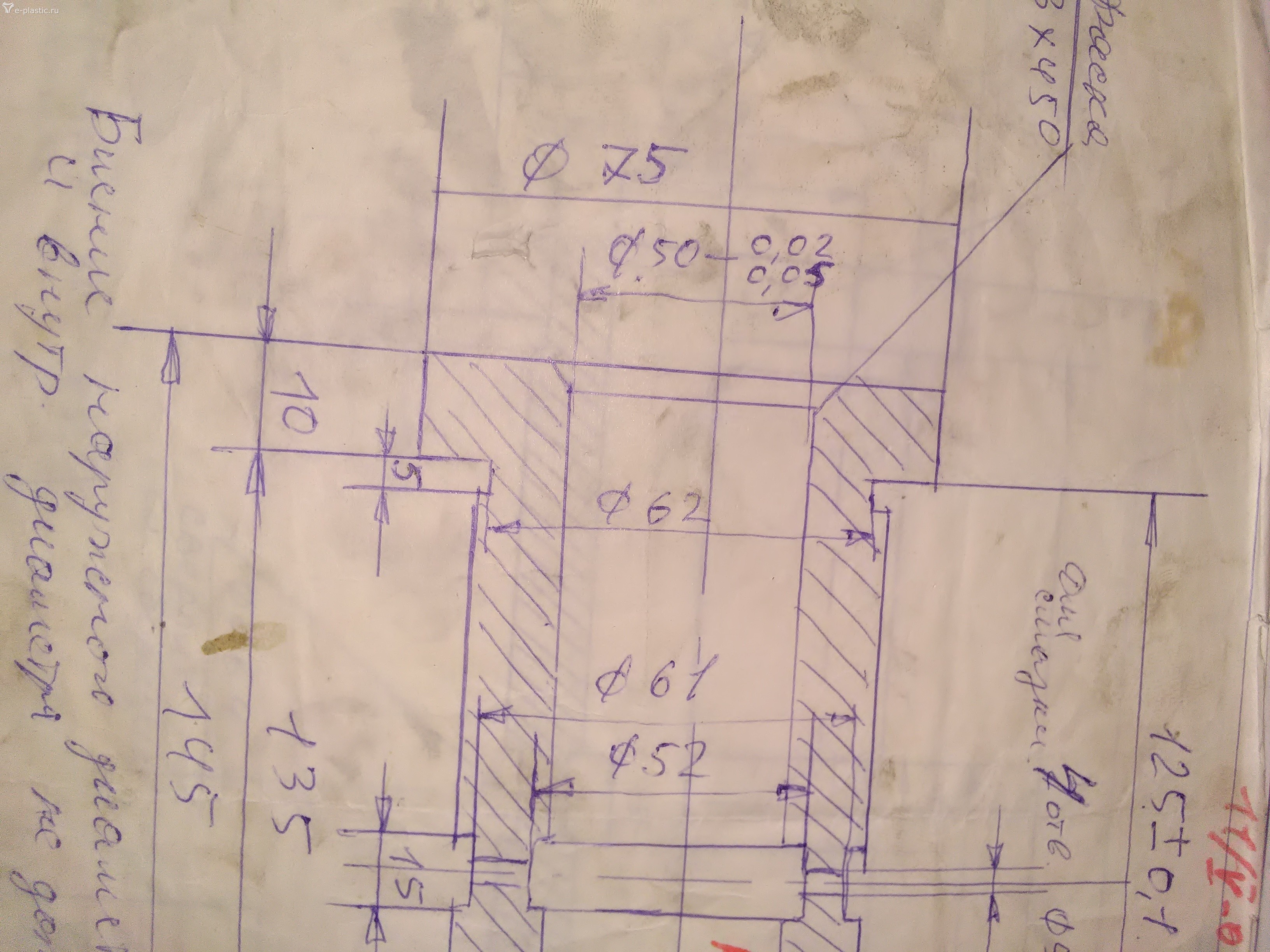 Ещё. Я понял в чем фокус твоего ф50,37- 50,38. У меня такое тоже бывает. Не в ту сторону десятки посчитал от нуля. А размер стало быть ф50 - 0,37-0,38. По другому ф49,63-49,62. Прижал чуток без трещетки. Что касается эскизов, не один десяток черенков поломали на кувалдах с похмелья в молодости мимо долбили. Не может там быть в плюсе ну никак. Немцы ребята очень точные были. Счас не знаю, вернее знаю все косячат почуть.