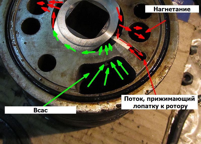 Пи.Си. Олькин, у вас там нижняя лопатка раком стоит, канавки на её стенке должны смотреть на полость нагнетания, через них подпирающее давление подаётся, иначе прижиматься не будут, одними коромыслами не удержите, сломаются. Если они будут смотреть в сторону всаса- их наоборот будет втягивать в статор.