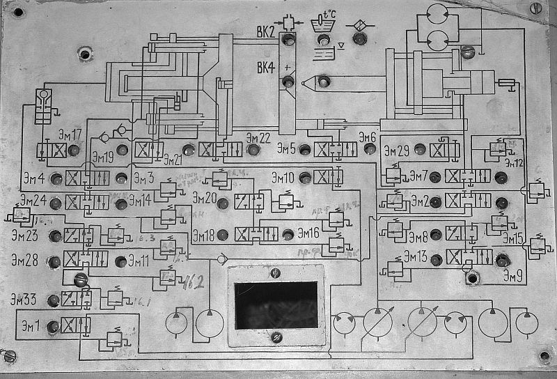 Гидравлики полной нет, только трафарет на шкафу и кусочки в руководстве, как их вместе сложить, да и за чем мне электрику это надо. Буду логику собирать по циклограмме, а там по ходу корректировать.