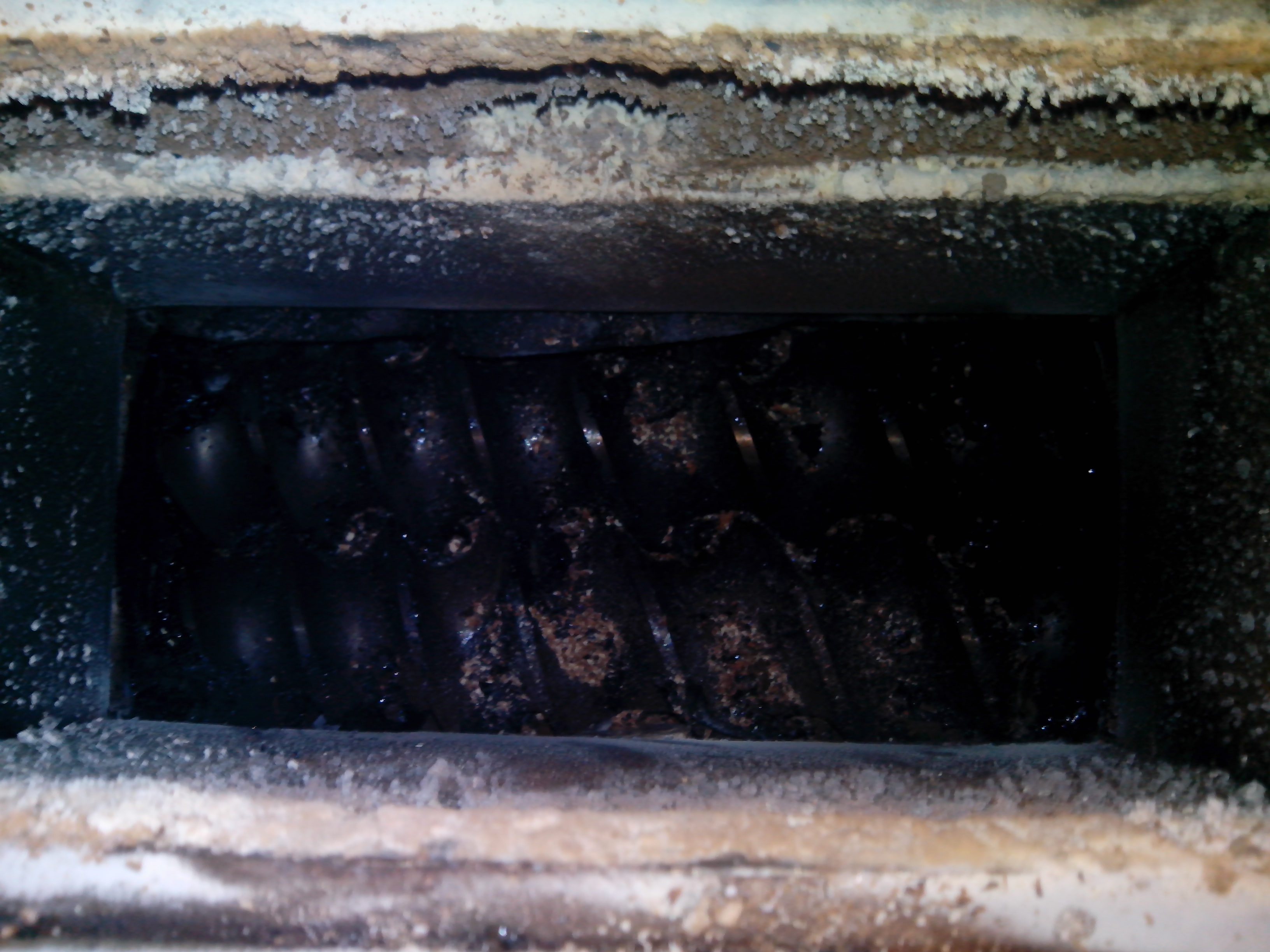 Муфты, соединяющие шнеки с редуктором, потрескались в местах, где внутри них стоят кольца, ограничивающие продольное смещение шнеков (моё определение...). Визуально было диагностировано смещение одного из шнеков относительно другого миллиметров на 10.