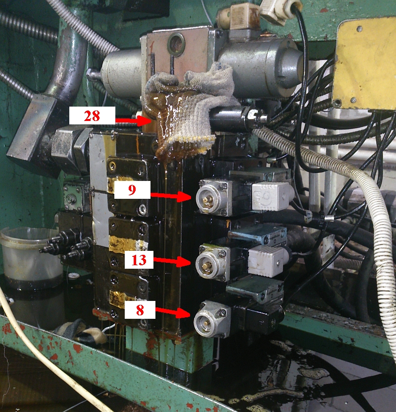 В общем проверили все клапана, всё работает и везде приходит 24В, куда надо! С режимами разобрался. Понял, что наладочный - тот, с которого я начинал. После того, как всё проверил по электрике, принялся за гидравлику. Средний насос дёргается, то есть судя по шлангу, давление скачет на холостом ходу. Насос, что с краю, дальний от двигателя, теплее остальных. Средний и ближний к двигателю, холодные. Открутив немного шланги, спустил воздух из системы. Станок заползал снова и так же медленно. Масло с насоса не так сильно течёт. Завтра буду всё чистить. А где, простите, находится седельный клапан? На каком магните?