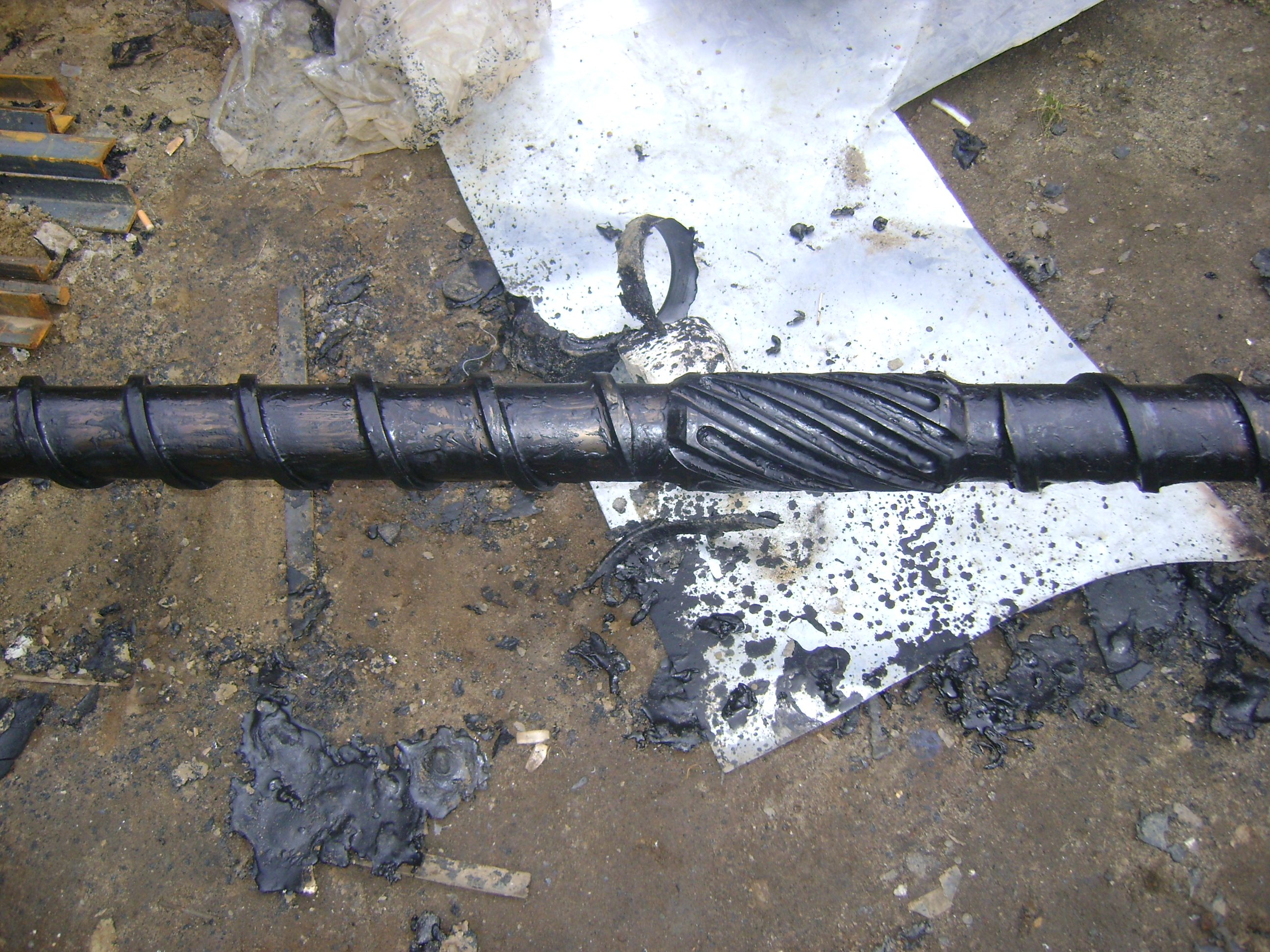 Уважаемые профессионалы, помогите не знаю что делать. Работаем на вторичке ПВД, стоял турецкий шнэк 90 мм.стренькая голова 400мм. все было нормально работали без проблем была конечно разнотолщинность но нас это устраивало, поставили китайский цилиндр и шнэк тоже 90мм.и началось. Середина на пленке идет тонкая края толстые разница 300-400 мкм.отрегулировать невозможно середина все равно тонкая. Думаем что это все из за головы,именно в этом месте где капля на фото пленка раздувается тонкая.Ставим старый шнэк проблема отпадает.ставили на новый шнэк другую головку такой же конструкции только на250мм. тоже самое середина тонкая. Посоветуйте что может быть,новый шнэк давит раза в три лучше, может проблема в этом, большое давление поэтому масса плохо распределяется, повторюсь со старым шнэком проблема была но не так ярко выражена.Температурами играл не помогает.