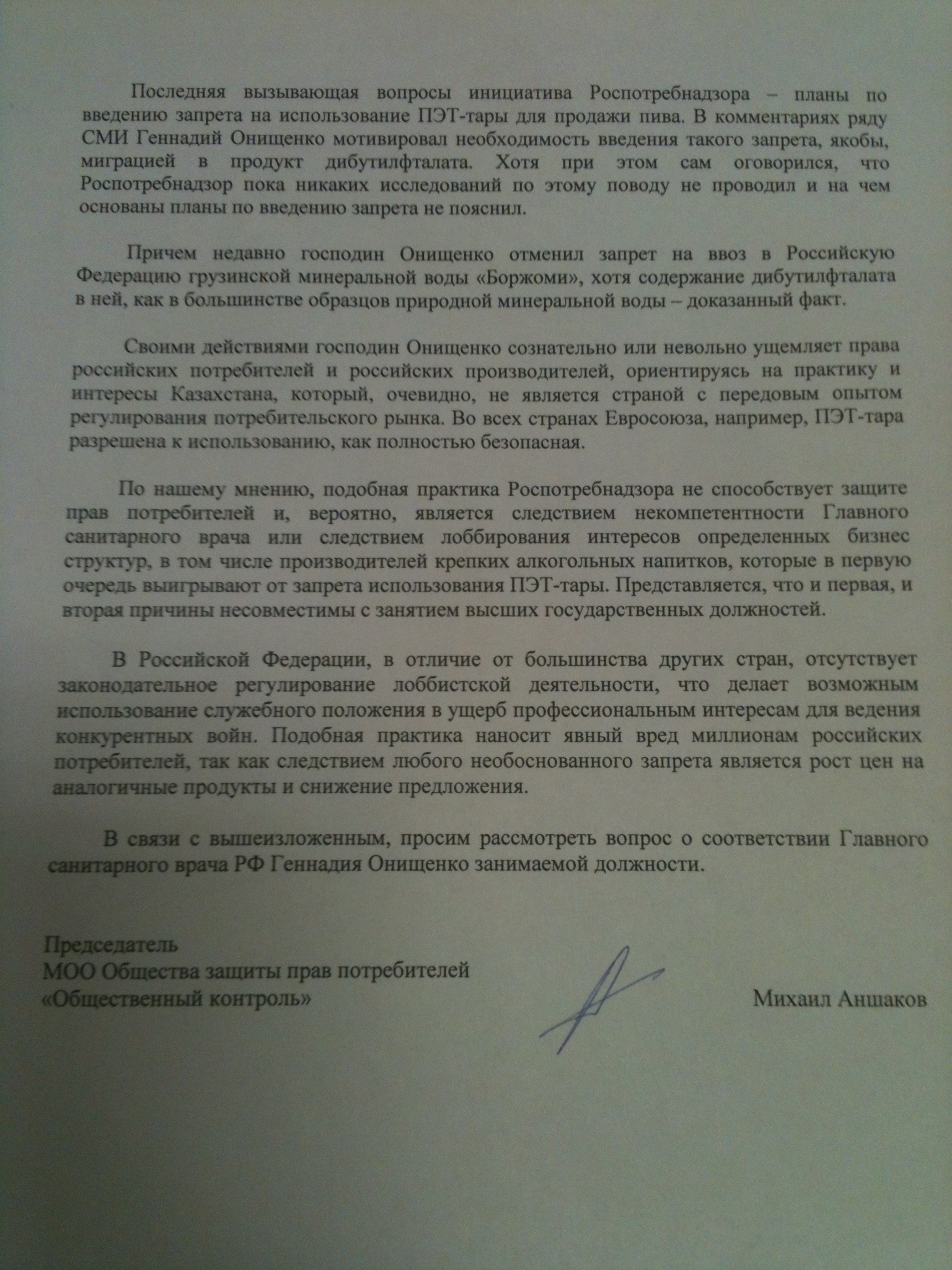 А по поводу Онищенко - люди нашего уровня не имеют понятия о том, что или кто в реальности им движет. Демарш с грузинским вином в свое время был явно политическим...