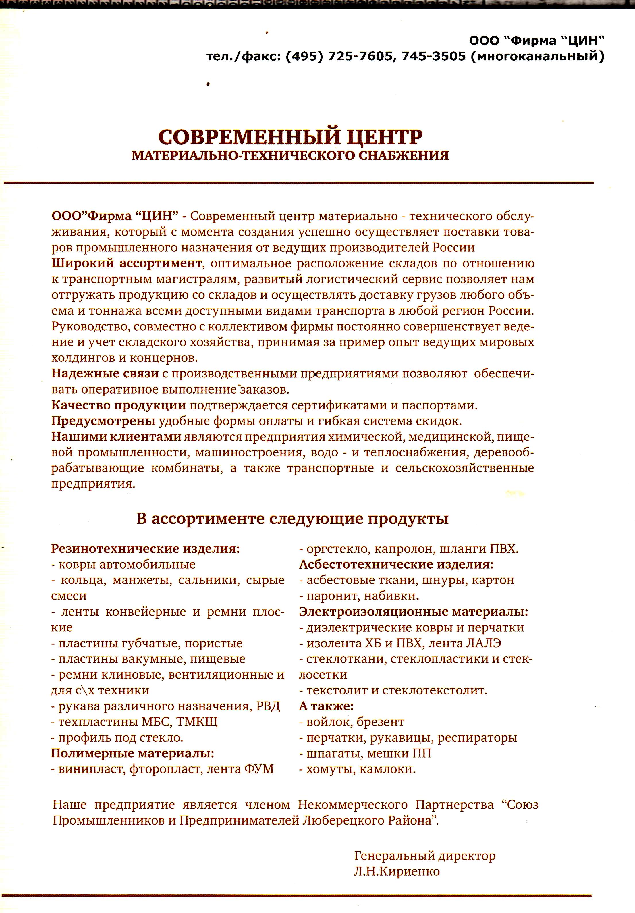 С ЦИНом начинал давно работать. Переехали в не удобное место. Последний адрес и телефоны надо проверить в интернете. остальные мелкие продавцы думаю кормятся сдесь же.