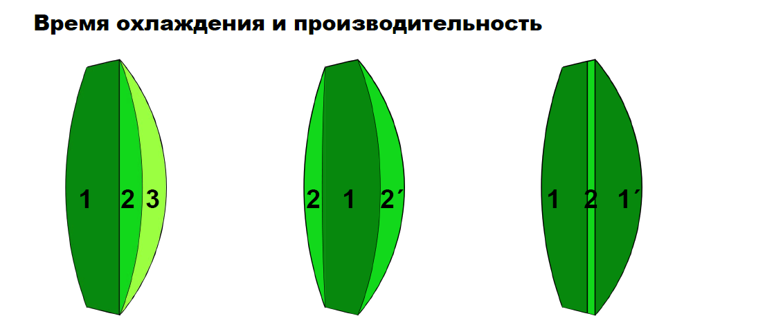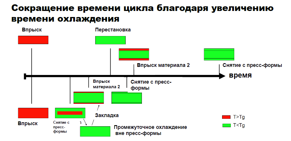 При многослойном литье со специальным охлаждением время сократилось до 59 секунд.