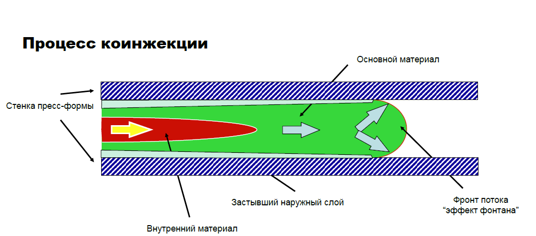 при коинжекции вязкость внутреннего материала должна быть равна (максимально приближаться по значению) вязкости наружнего материала.