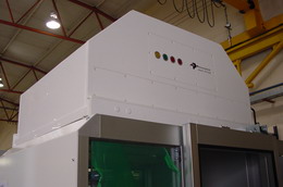 Второй вариант исполнения это установка над рабочей зоной ТПА ламинара образующего как-бы локальную чистую зону. Изделия же посредством специализированного конвейера подаются в «чистую» комнату, где они упаковываются и при необходимости стерилизуются. Принцип работы ламинара крайне прост, это попросту воздуходувка с фильтром. Ламинар непрерывно подаёт очищенный воздух в рабочую зону образуя как бы ветер, который исключает попадание пыли на изделия. Вот в этом варианте допускается и использование ремней, и двигателей с воздушным охлаждением. Сами понимаете, что постоянный поток очищенного воздуха не даёт попасть пыли от двигателей и ремней в рабочую зону, она попросту выдувается из ТПА. Но всё же, лучше использовать прямые привода и водяное охлаждение. Как говорится: бережёного Бог бережёт. В этом варианте мы уже можем остановить один ТПА для ремонта или обслуживания без ущерба всему производству. Персонал не стоит одевать в специальные халаты, выдавать маски и т.п. Кажется идеальный вариант, но он не всегда подходит для сертификации по классу чистоты 4, а это бывает необходимо для изготовления некоторых изделий.