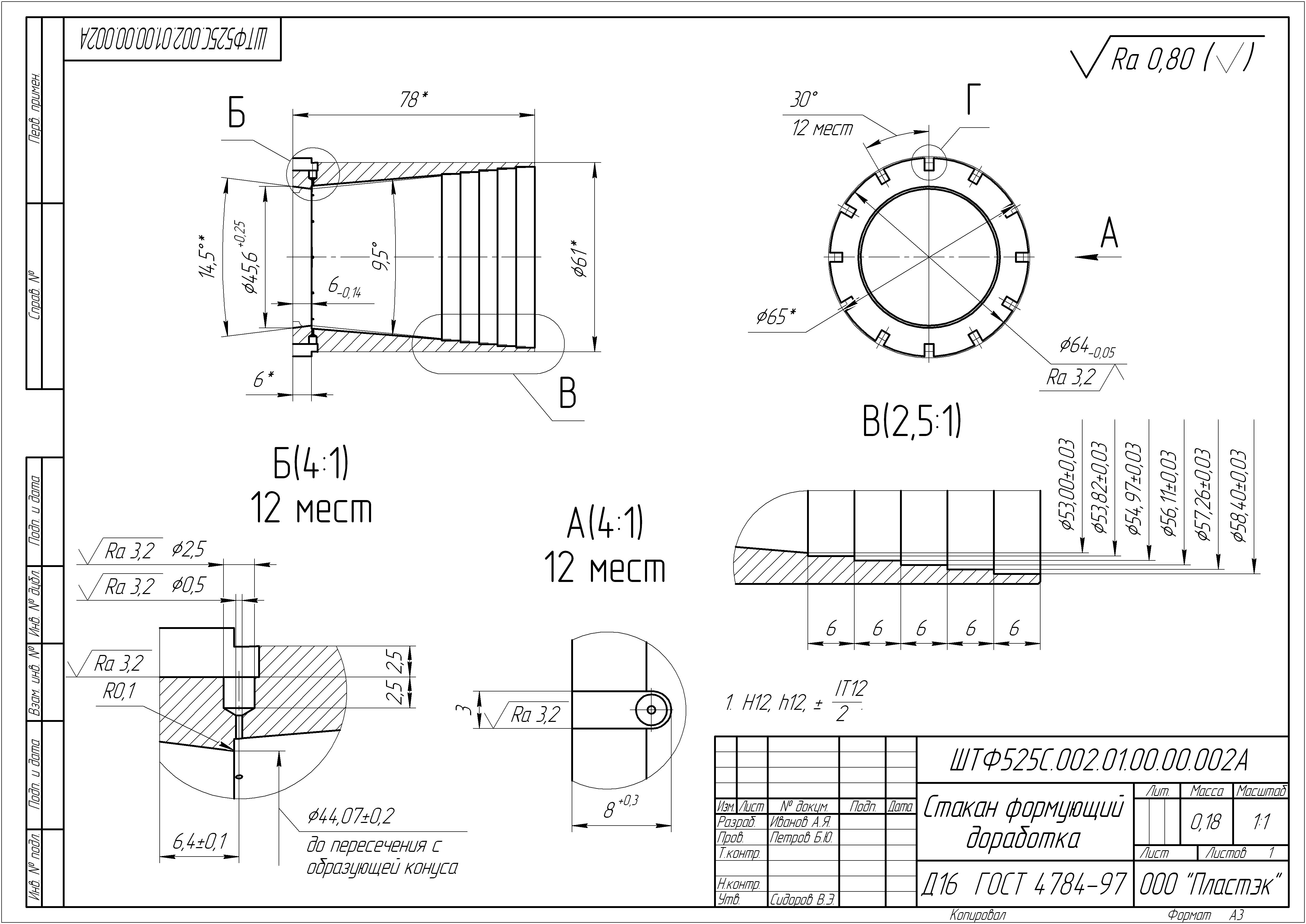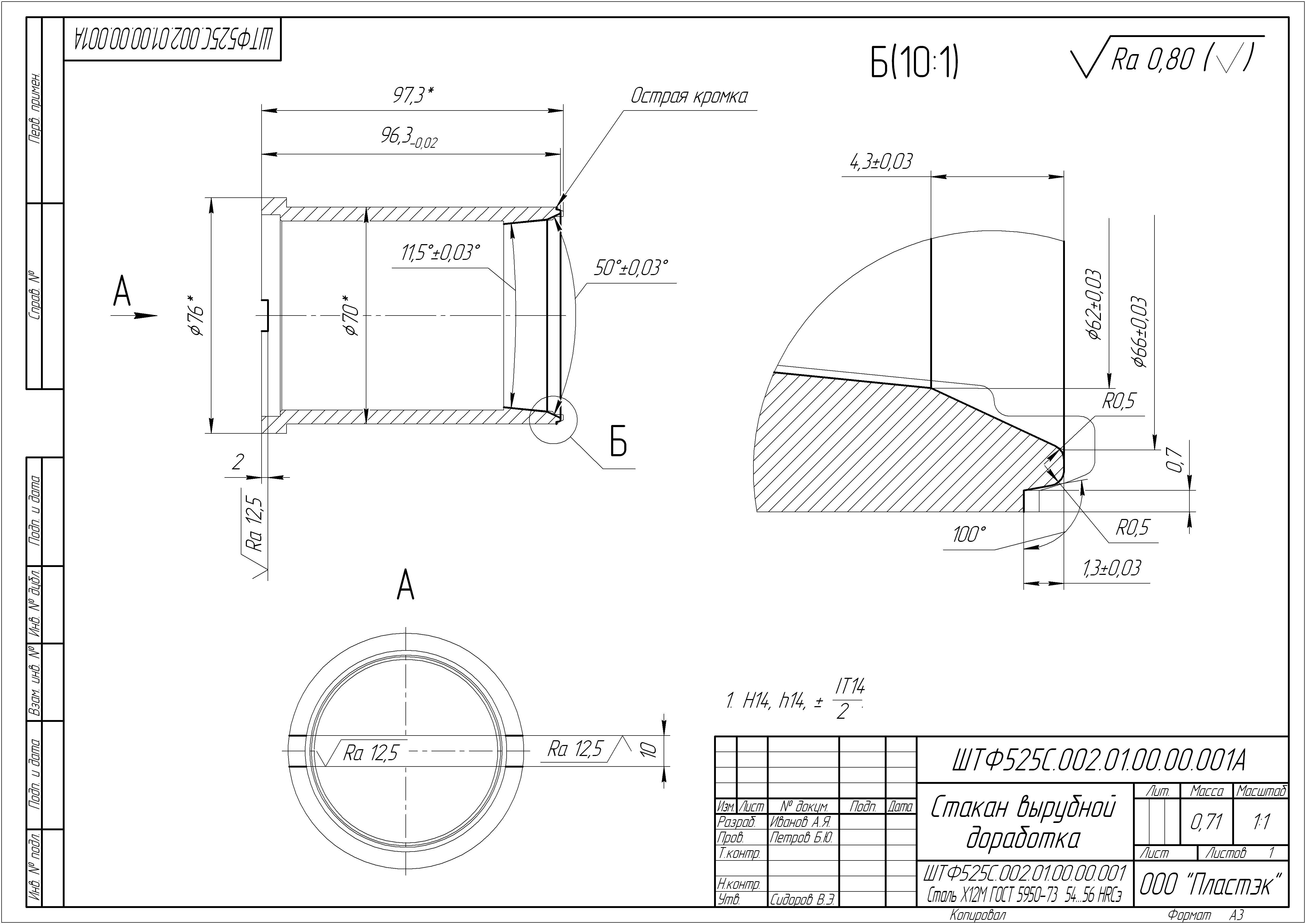 Чертежи надо будет согласовывать в бумажном виде. Так как уже есть вопрос по рубящему стакану. Конструктор поставил размер по рубящей кромке 70* как справочный. А сопряжение рубящей кромки стакана с рубящей плитой на полипропелене 0,05 в плюс, иначе стаканы могут висеть. Плиту надо точнее замерить. Желательно нутромером.