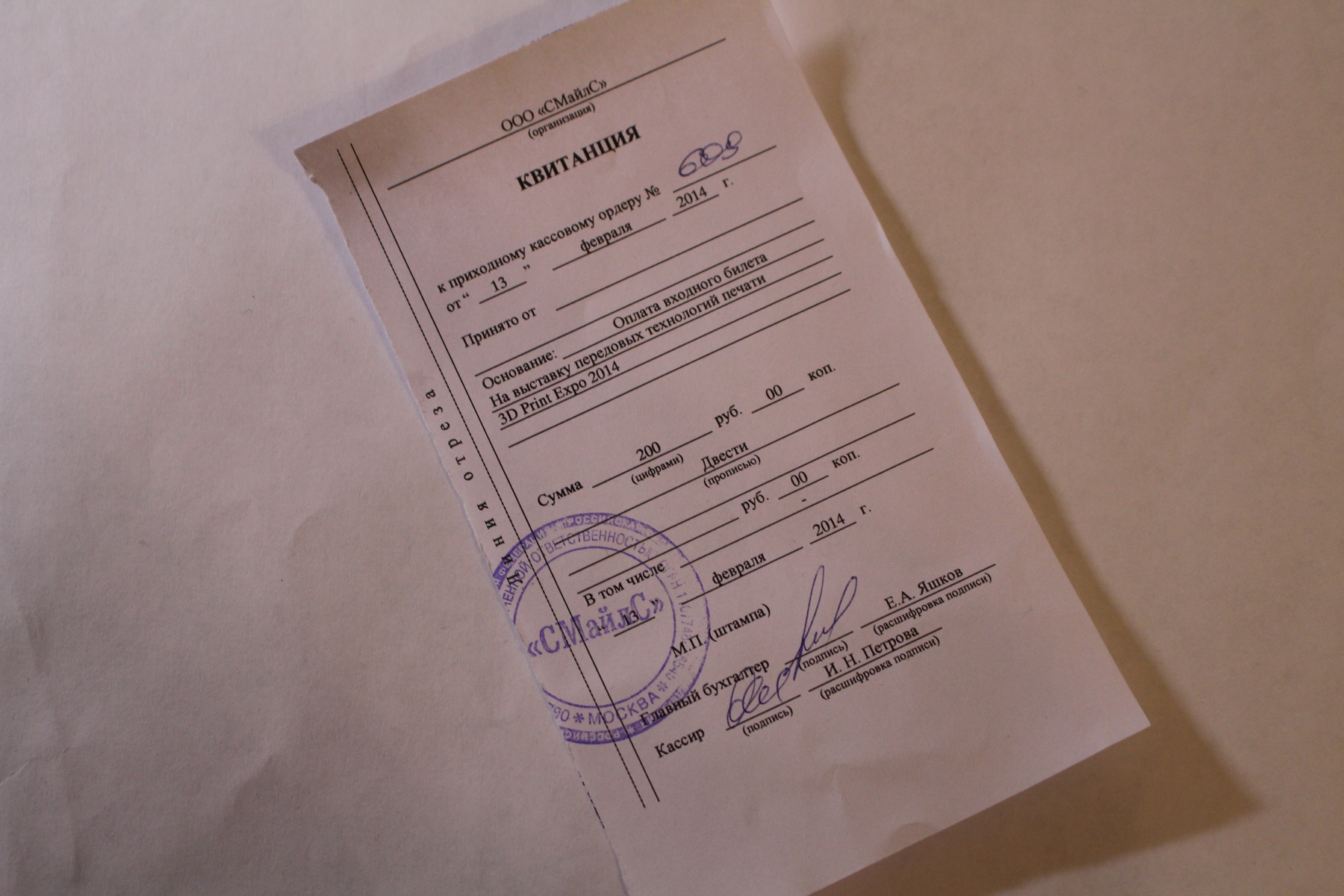 В реальности, конечно, всё оказалось не на мировом уровне, а скромнее. И даже крайне скромно. В общем-то, ожидать от первой в своем роде выставки чего-то мощного по определению нельзя, однако в данном мероприятии не видно было соблюдения даже простых, общепринятых стандартов организации выставок. То есть: никакой рекламы события, даже при входе в парк Сокольники, где выставка 3D Print Expo имела место быть; плохо организованный вход на мероприятие, где умудрились устроить толчею с участием не более двух десятков человек; отсутствие билетов на выставку, зато присутствие непонятных «квитков» вместо них; заполнившийся за несколько минут ну очень маленький гардероб; крайне узкие проходы между стендами и тому подобные мелочи. Размеры стендов на выставке не поражали воображение – большинство из них вполне вписывалось в диапазон 5-15 квадратных метров, а самый большой вряд ли был больше 25.