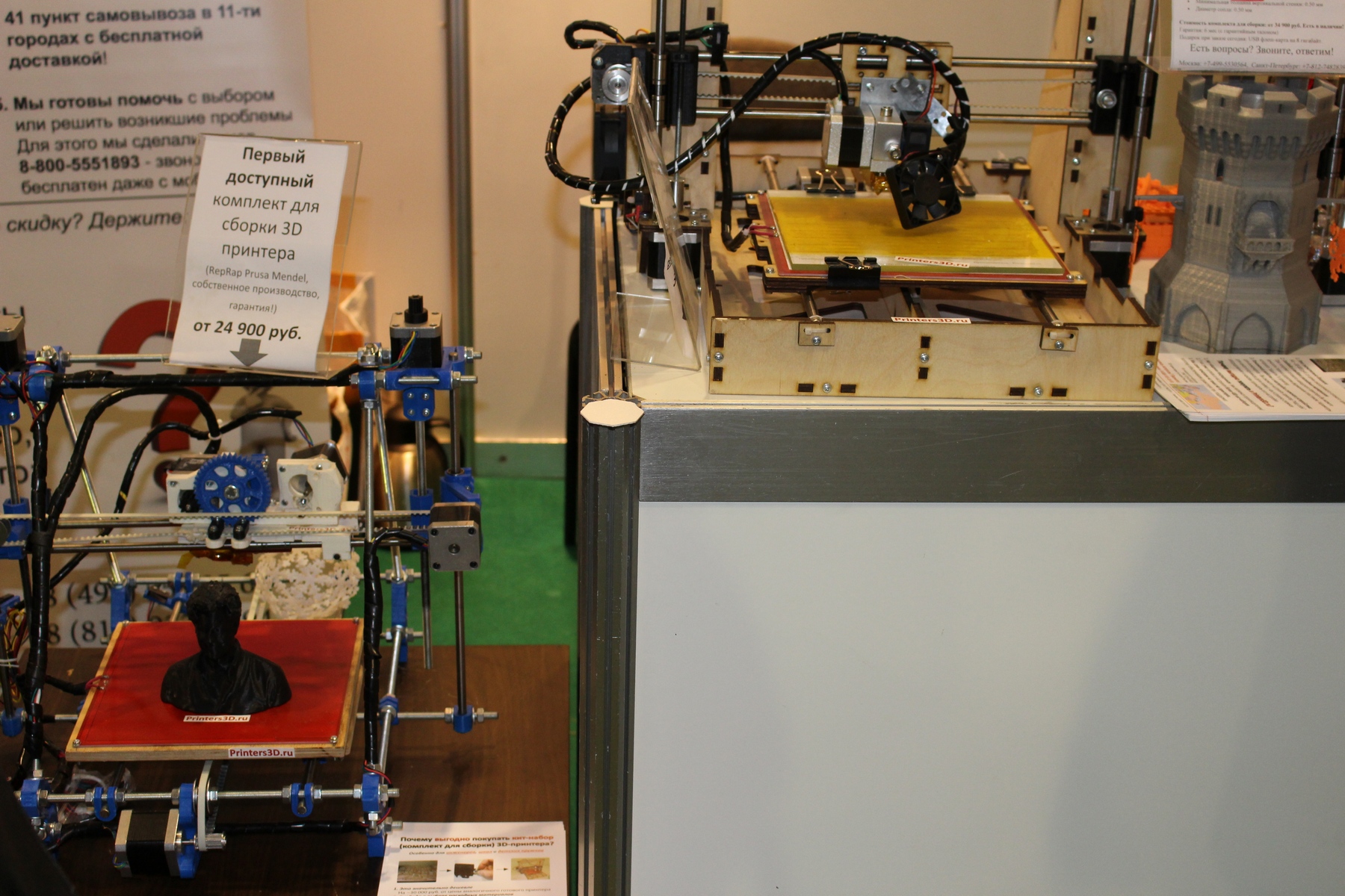 Перейдем к непосредственно главному на этой выставке – девайсам. Среди экспонатов 3D Print Expo присутствовала пара профессиональных устройств от лидера мирового рынка компании 3D Systems, объединяющей сейчас уйму разных производителей и брендов, а также широкий ассортимент персональных «домашних» трехмерных принтеров. Вообще компанию 3D Systems можно признать главным участником и непререкаемым авторитетом выставки в Москве. Кроме того, было показано много недорогих малоизвестных моделей, в основном из Китая, предлагаемых по доступным ценам. Достаточное количество наборов «сделай сам» можно было наблюдать на описываемом мероприятии в Сокольниках, причем цены начинались прямо-таки от смешных для 3D принтеров 20-25 тысяч рублей за конструктор.