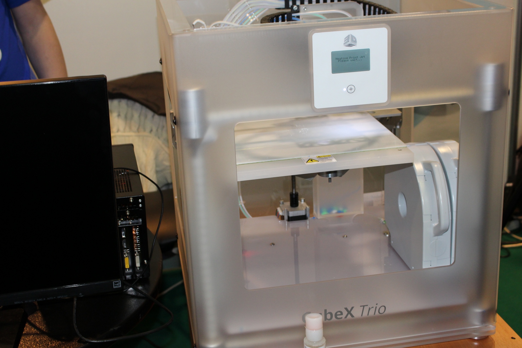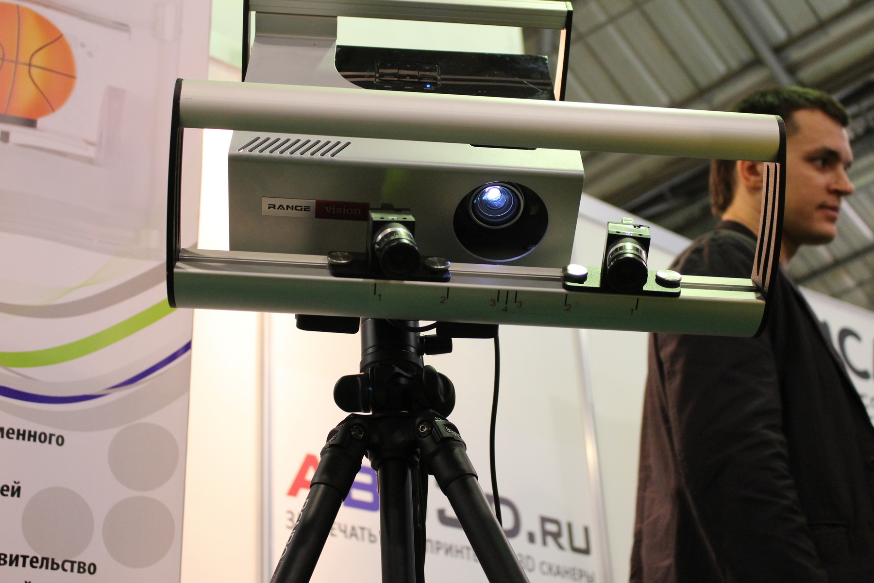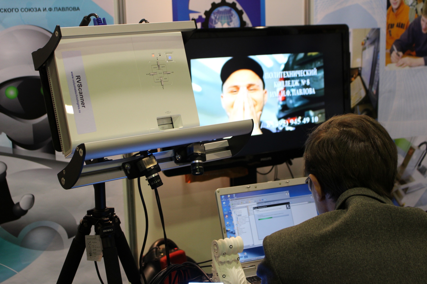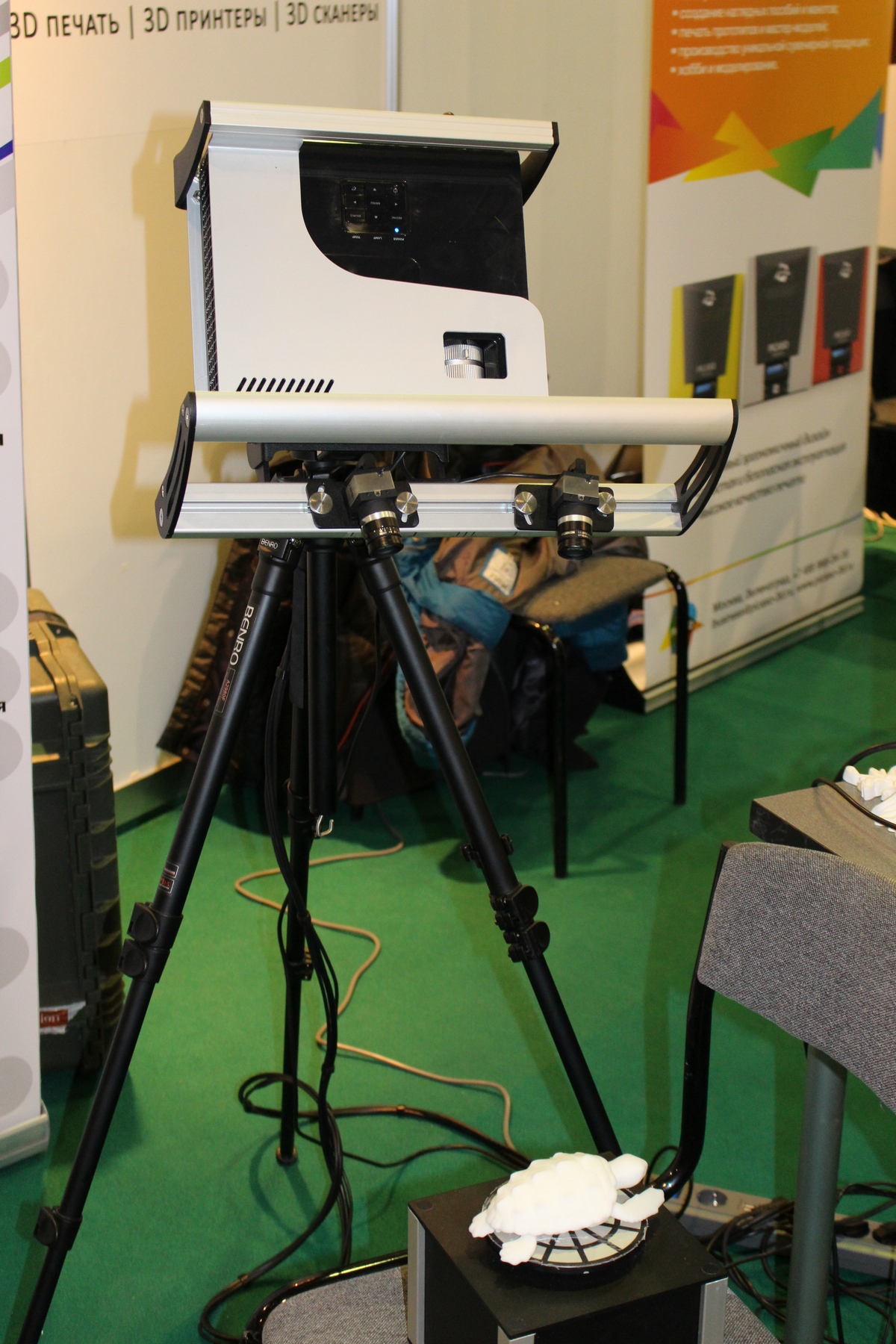 Зато на выставке 3D Print Expo отрадно было наблюдать некоторое количество образовательных учреждений, погруженных в исследования в области трехмерной печати. Тут тебе и МАИ, тут и всякие колледжи. Одно из учреждений продемонстрировало трехмерный сканер собственного производства!