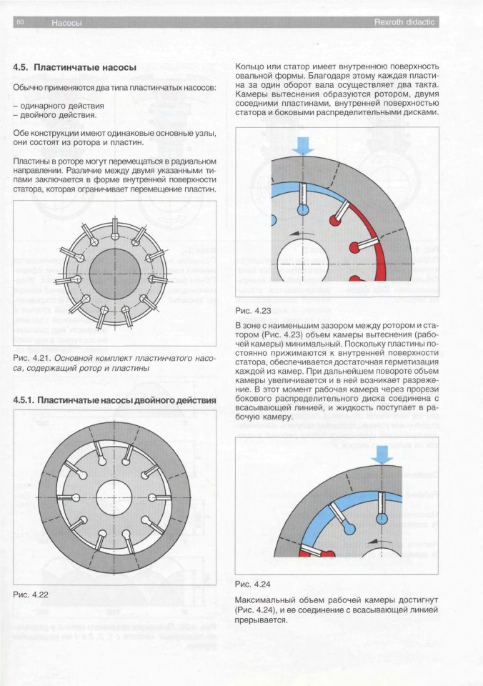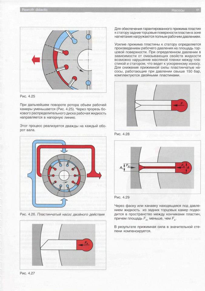 Что бы правильно понимать -насос правого вращения- смотрим на крыльчатку насоса, если крутится по часовой стрелке насос считается с правым вращением. Нельзя определять направление вращение вала с хвоста насоса это не принято и можете ввести в заблуждение. Если у насоса утерян сорван шильдик. Определить литраж можно по фланцу на торце выбита производительность. Если меняли фланец и не помните какой стоял раньше,литраж помогу определить по размеру наибольшего диаметра статорного кольца -элепса. Насосы с одинарными пластинами рассчитаны на 6,3 МПа -потолок ( один штифт). Насосы с двойными пластинами 12,5 МПа старого образца с чугунными щечками (два штифта). И на сегодня все насосы с двойными пластинами выпускают на давление 16,5 МПа. Щечки стальные со специальным упрочнением поверхностного слоя. ( пара штифтов)ЗЮМ писал(а):на рисунке хорошо видно как собирать. тут явно видно насос правого вращения. Вращение со стороны мотора. И вариант с левым вращением тут не проходит.evgeniialex писал(а):А есть значение,как ставить крышки? На последнем насоса верхнюю можно было в 4 положения воткнуть.