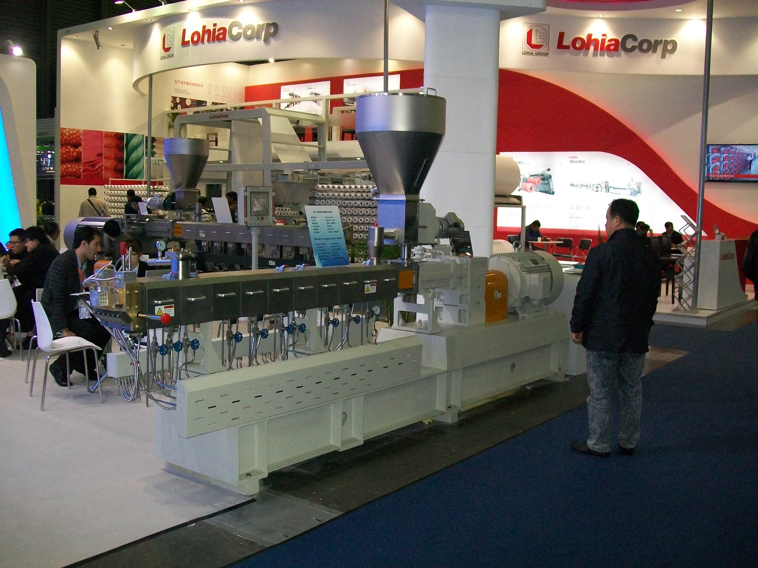 В области экструзии, как и во многих других областях, китайская выставка очевидно развивается по направлению от большего количества в сторону лучшего качества. Уже сложно встретить оборудование адского дизайна, некрашенное, из некачественно обработанного металла и т.п. С другой стороны, китайцы немного умерили свою гигантоманию. Все стенды и машины на нем были более или менее нормального размера, менеджеры выставляющихся компаний вели себя скромно и по-деловому. Величиной и размахом выделялась лишь, пожалуй, компания Jwell, один из лидеров китайского экструдеростроения. Как всегда, в изоблии были представлены производители шнеков и прочих компонентов. Любопытно, что большим стендом на Chinaplas 2014 обзавелась итальянская компания-производитель экструзионных редукторов топ уровня Zambello.