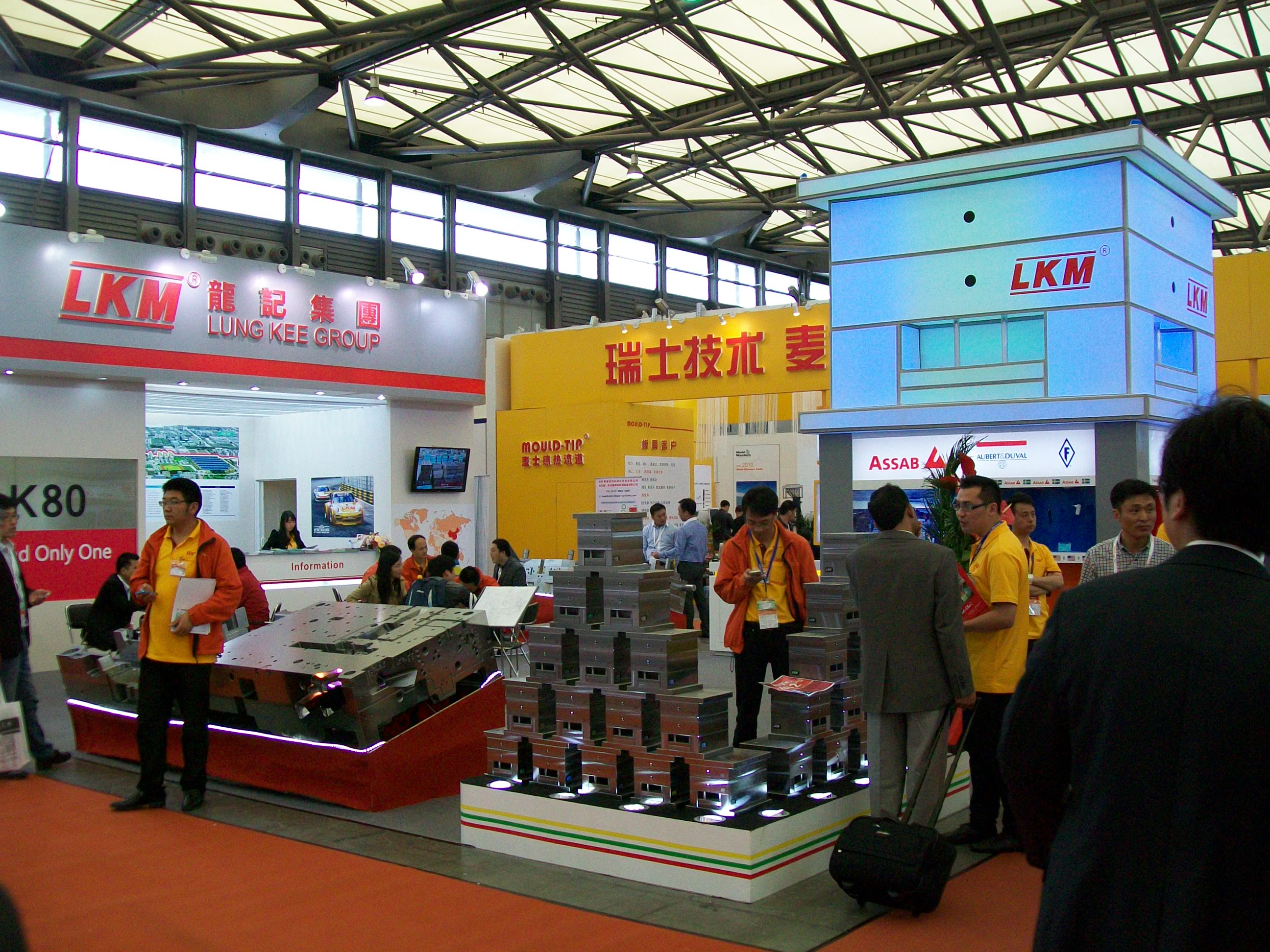 В области литья, помимо упомянутых выше Haitian и ENGEL никаких особенных прорывов не наблюдалось. Как всегда мощно выставились китайские гиганты Cheng Hsong, Tederic, Bole, Borche и т.п. При этом только совсем не уважающие себя компании не привезли машины больше 1000 тонн и электрические ТПА одновременно. Индустрия прессформ, как известно представлена обычно на Chinaplas очень однобоко – либо это западные прекрасные компании высокого уровня, рассчитанные на высокотехнологичные китайские предприятия, а также на иностранцев, работающих в Китае, либо ширпотребные, но большие по размеру молдмейкеры из КНР, желающие подловить на Chinaplas иностранцев (в том числе наших соотечественников). Из производителей компонентов пресс-форм выделяются своей мощью изготовители горячеканальных систем. Крупнейший мировой производитель ГКС корейская YUDO, как всегда показала много новинок, в их числе применение сервомоторов и шаговых двигателей для привода запорных клапанов горячего канала. Mold-Masters (Канада) впервые в истори