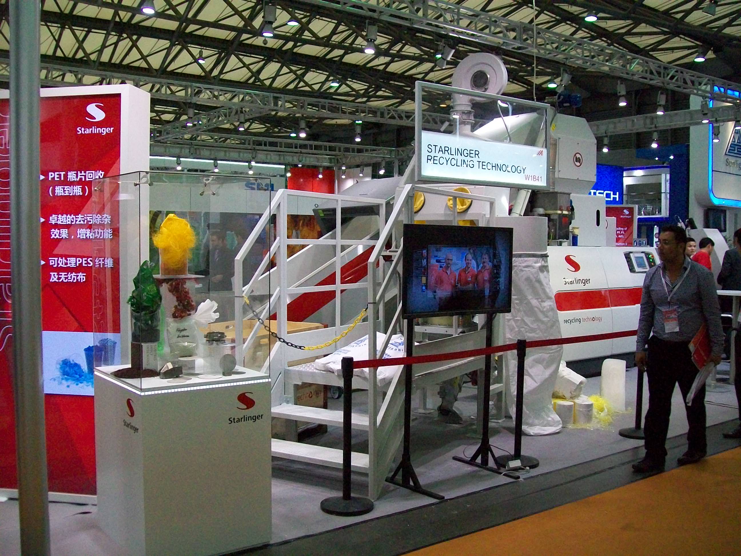 Стенд СИБУРа, как было написано в отчете - черен и страшен. Идет так ничего не подозревающий китаец среди белых и пушистых стендов других производителей сырья и бац!.. Вот он, во всей красе А корейские сырьевики привезли не только Хендай, ставки повышаются, господа. Стенд Solvay (которая уже 100500 лет строит в Нижнем завод ПВХ) - как всегда мощненько Старлингер поятоянно привозит в Китай свои немаленький ткацкие станки Такие штуки теперь стоят на перекрестках коридоров выставки Свежая какая-то идея Это Стиролюшн, отделился от папы Басфа и пошел своим путем Как водится, большая, серьезная китайская машина для солидных господ Вообще тут продают японские машины TOYO, но стенд называется как-то странно, что удивило и насторожило Немного Америки на диком востоке А вот и он - долгожданный и удивительный Винтек бай ЭНГЕЛ И это тоже похоже на Энгель. Как минимум цветом Еще одна эпичная штука выставки - концерт на YUDO Он же сбоку Вот так примерно китайские мастера организуют ваш заводик, только дай доллары. И еще одна новинка сезона - Зафир Зерес. Уже не совсем электрика!