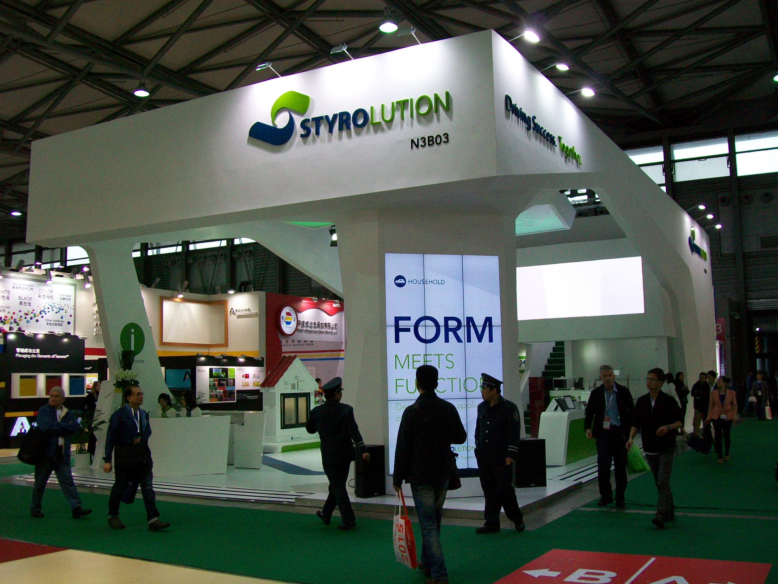 Производители полимерного сырья всегда организуют на подобных выставках огромные стенды футуристического дизайна, иногда выставляют на них баночки с гранулами новых пластиков, а чаще девушек-моделей или моделей авто. Автомобили должны символизировать широкое применение пластмасс компании для выпуска продуктов самого высокого уровня. Девушки-модели символизируют, что не все еще в этом мире делается из пластмассы.