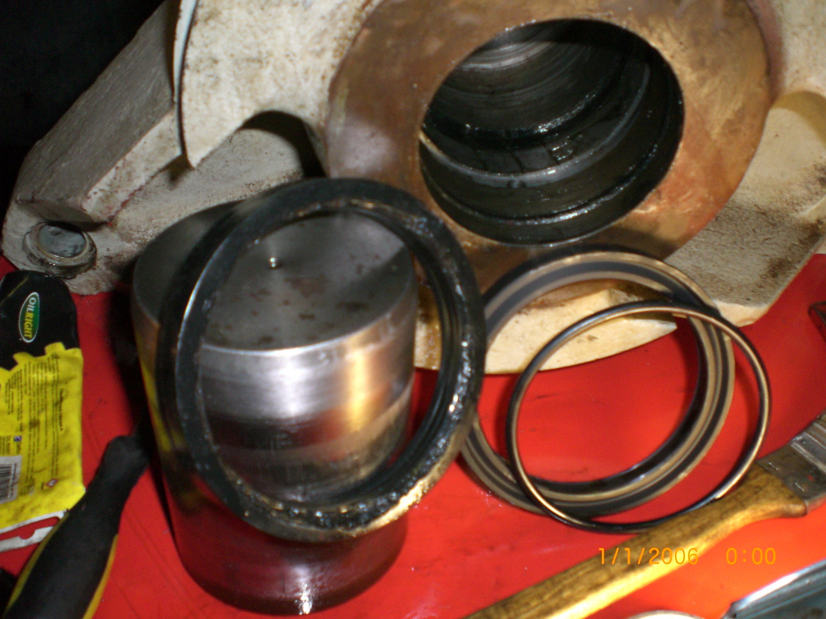 Свежие кадры процесса. А что места не занимают. хлеба не просят а для обучения в самый раз... Замена уплотнений на цилиндре возврата колонн, по другому сказать отрыв изделия. Куаси 5000/800. Цилиндр односторонний.