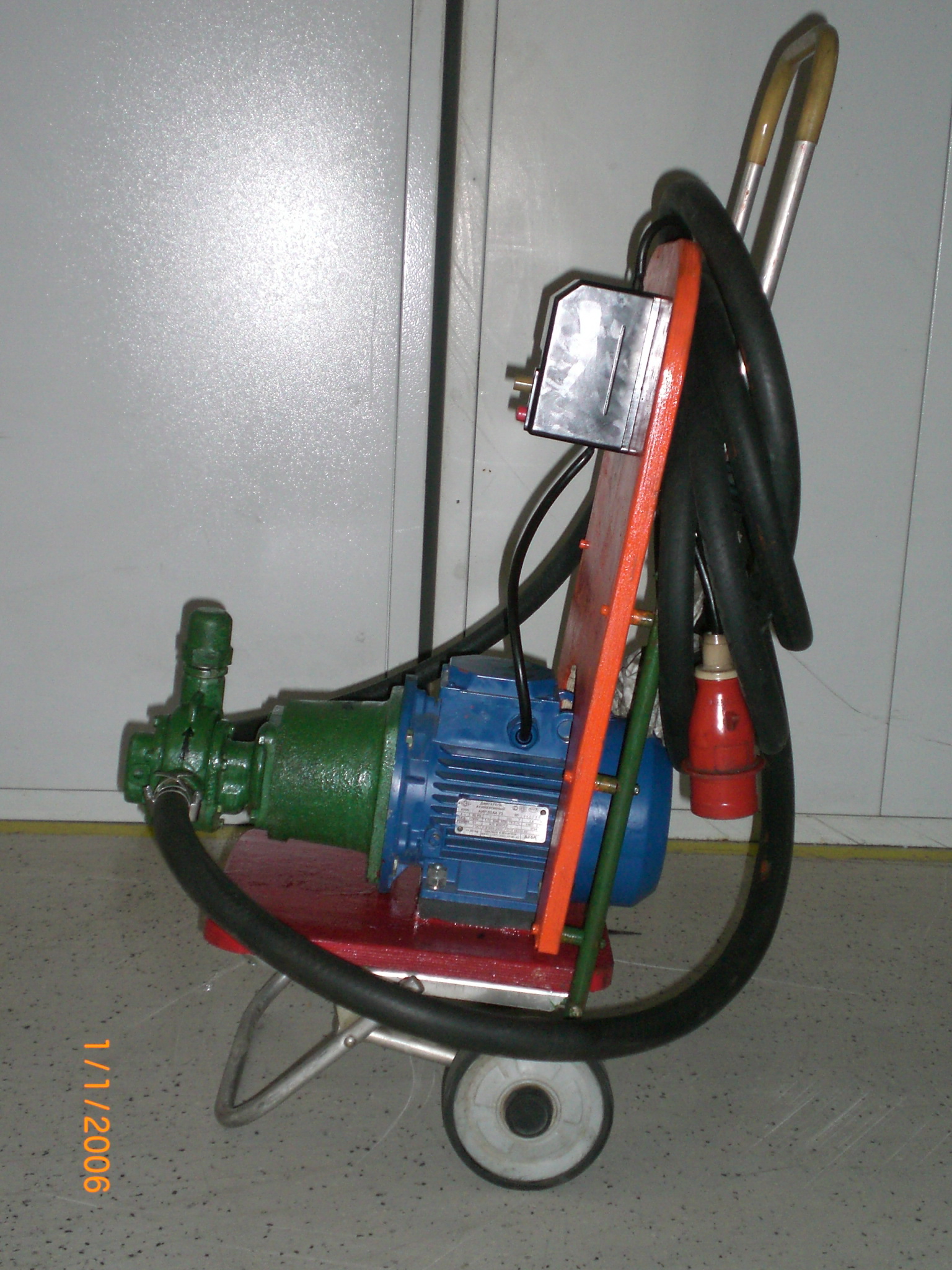 У нас такой сварганили ещё лет 7 назад, только тележка 4 колесная и покрепче.Шланги (метров по 5-6) и провод питания (метров 10 3х фазный) неотключаемые, просто сматывают на тележку...Мулланур писал(а):Ох, Вячеслав Михайлович, слабовата рама. Если добавить еще вес штуцеров в крученых в насос к которым присоединятся рукава длиной около 2,5 метров (т.к. высота бочки в районе 850 мм) с фильтрами и вес силового кабеля длиной до ближайшего разъема с пусковой коробкой, то боюсь эти колеса с рамой просто не выдержат статического веса конструкции, а еще под вопросом нагрузка на эту тележку при запуске насоса.ЗЮМ писал(а):Если гора не идет к Магомету, то Магомет идет к горе. Насос для перекачки масла в ТПА своими руками. 5 часов работы + немного инициативы. Завтра испытания." Я его слепила из того что было- а потом взяла и полюбила..." СВИП- ВЯЗЬМА-15-05-2014.