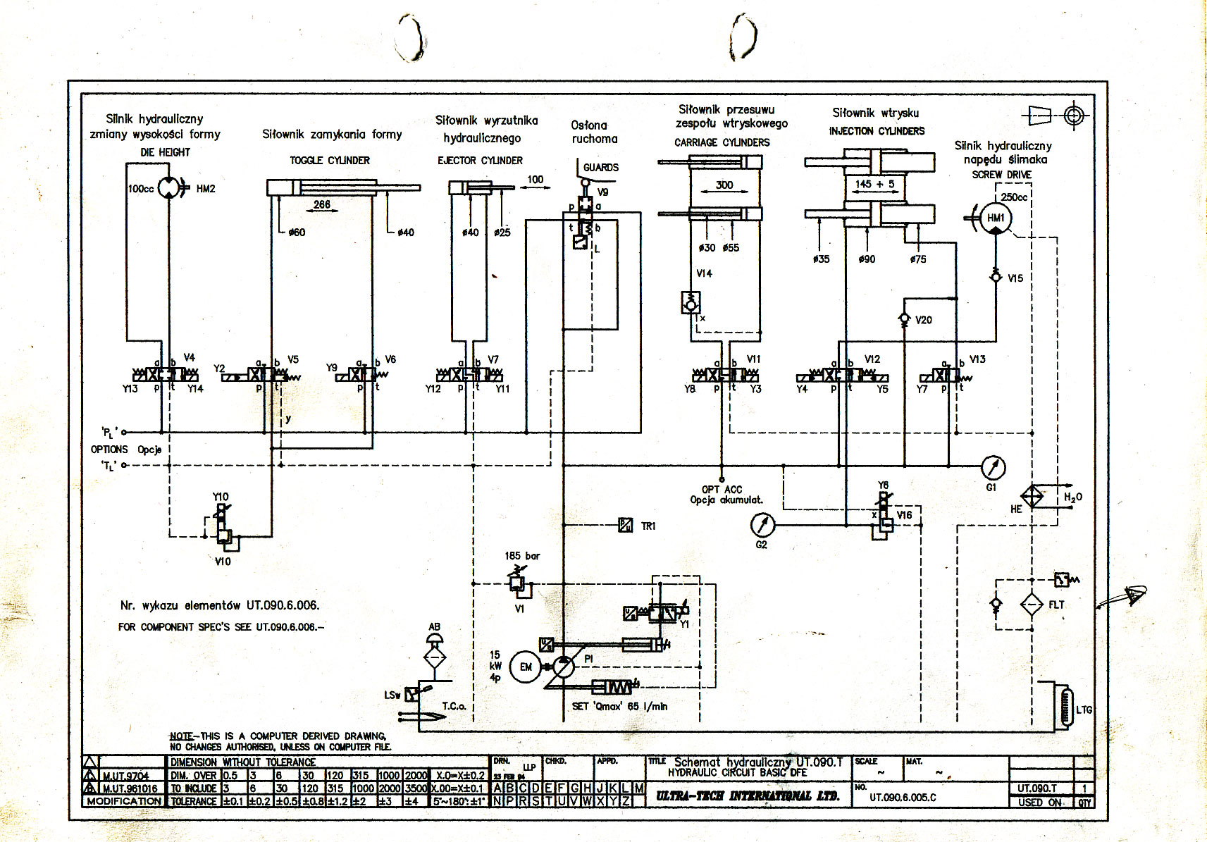 Предположу, что на 90 пропорциональный клапан V16 "противодавления", на слив "сильно" подпирает во время отвода шнека назад (декомпрессия) и загрузки(вращения шнека) (более 10 бар) это может быть: 1) загублено "0" положение его золотника; 2) возможно подклинивание золотника; 3) установка на панели управления значения "противодавления" более чем 10 бар; 4) Сбой электроники, не правильное подача импульса на пропорциональный клапан; и т.д. ...