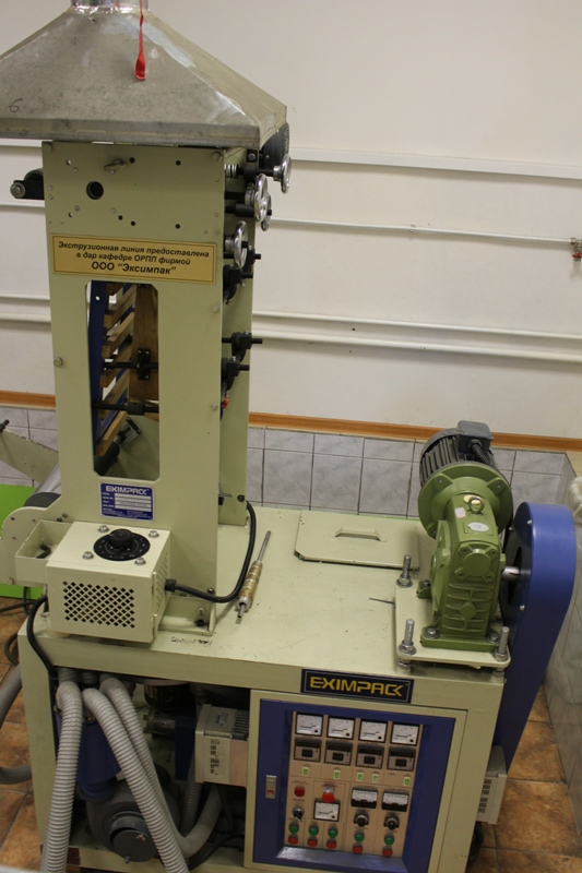 Система вакуумной сушки MAGUIRE Экструзионная установка для получения рукавной пленки Эксимпак Участок прессования резиновых изделий (пресс + вальцы) Одночервячный экструдер – Три штуки. Собственная разработка кафедры.