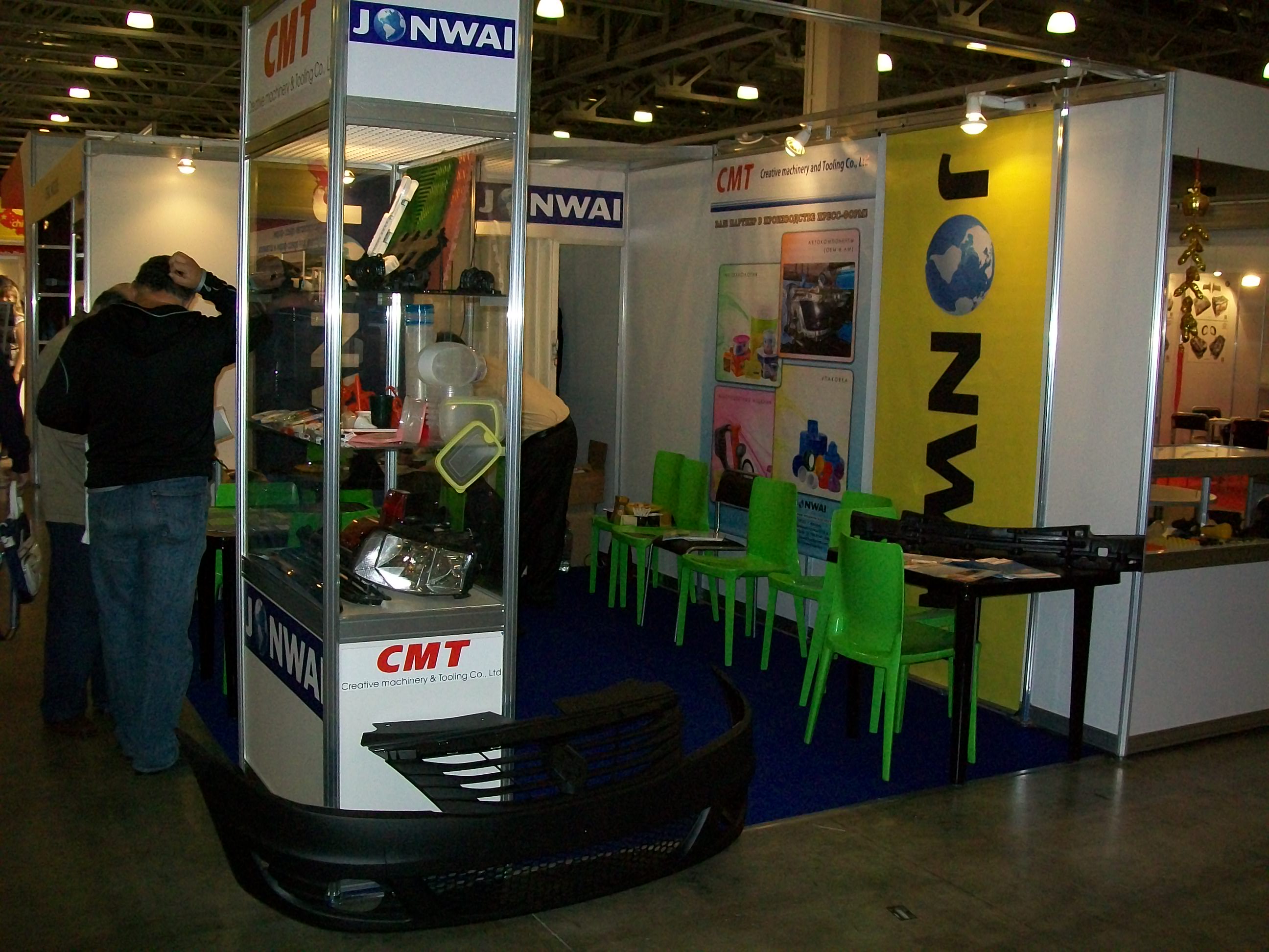 На входе гостей встречала такая стойка. Иногда даже были очереди Много выставилось китайцев, наверное не меньше сотни Славная компания Балитех (тоже китайцы) Это тайваньцы, большой, но пустой стенд Это самый большой стенд на выставке - группа ГАЗ Зенит-Авто, делают прессформы Вообще мало кто из россиян делает сам формы. Вот, скажем, зеленоградский Элион немного А вот португальцы Еще португальцы (и кстати на этом всё с ними) Вечный солдат - АБ Универсал (since year 1900)))