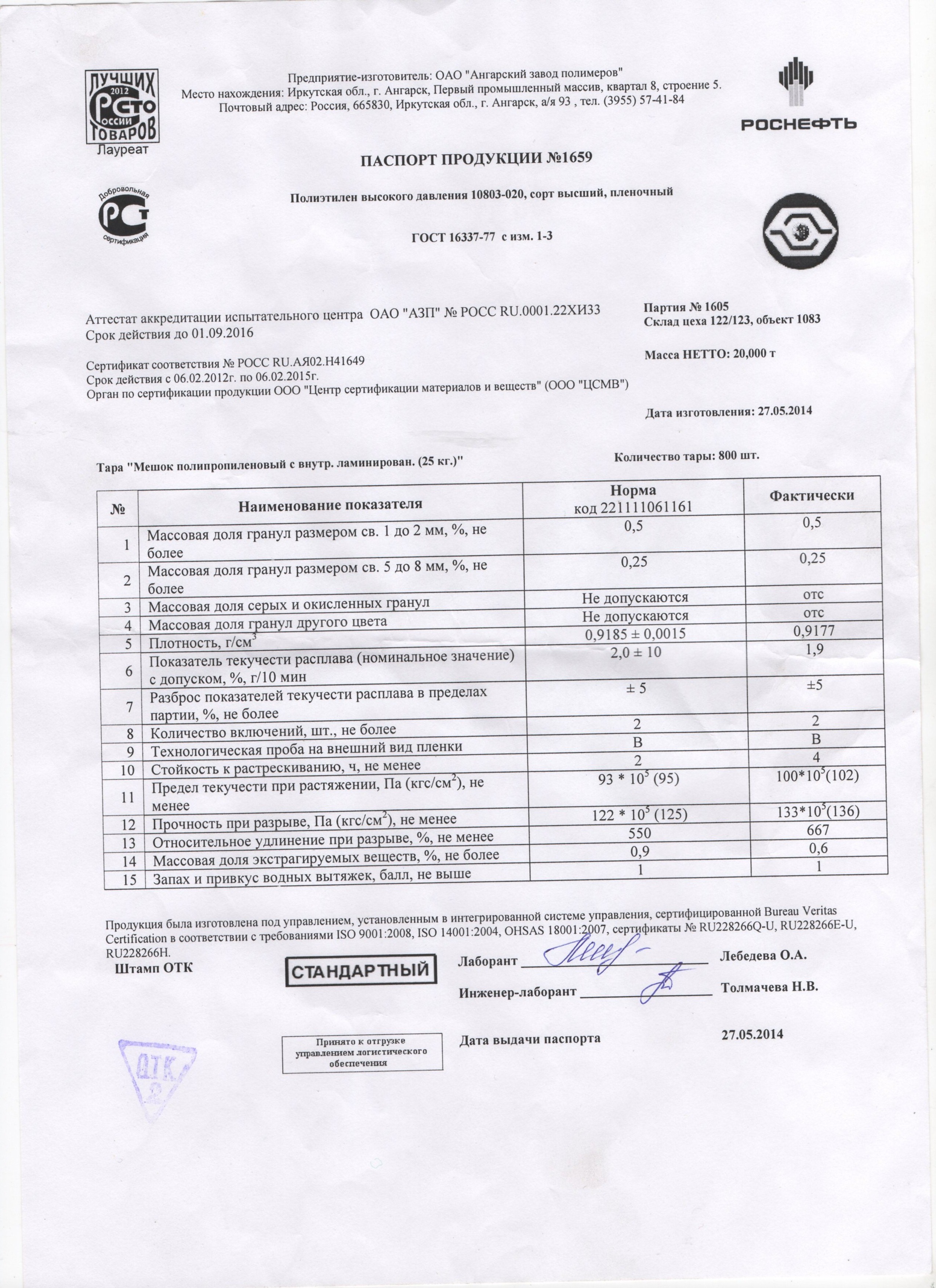 Посоветуйте пожалуйста лабораторию где можно сдать на анализ отходить ли по паспорту высший сорт этого сырья это или нет .Maks42 писал(а):Может это вообще не для пленки, что в паспорте написано по технологической пробе (гелики): А, В или С?