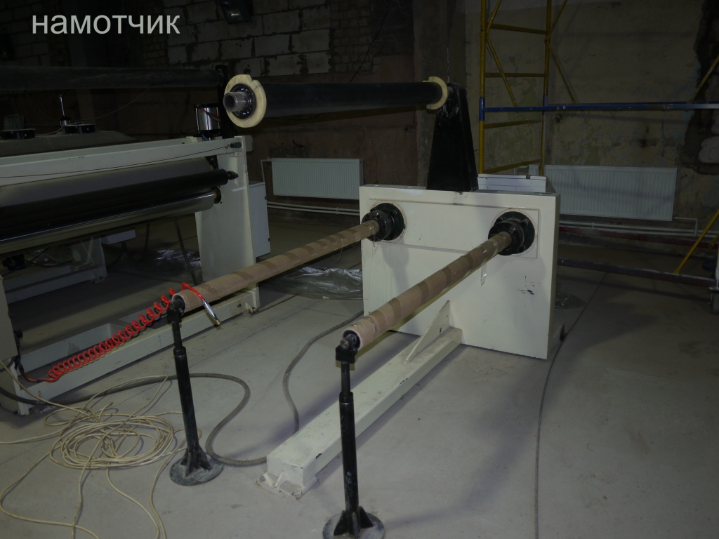 Имеется в наличии намотчик на фото. Производство пэт пленки. Двух валков не хватает для резки полотна на три-четыре части. Пробовали мотать по 2 ролика на одном валу, сбивается натяжка или уходит в сторону.