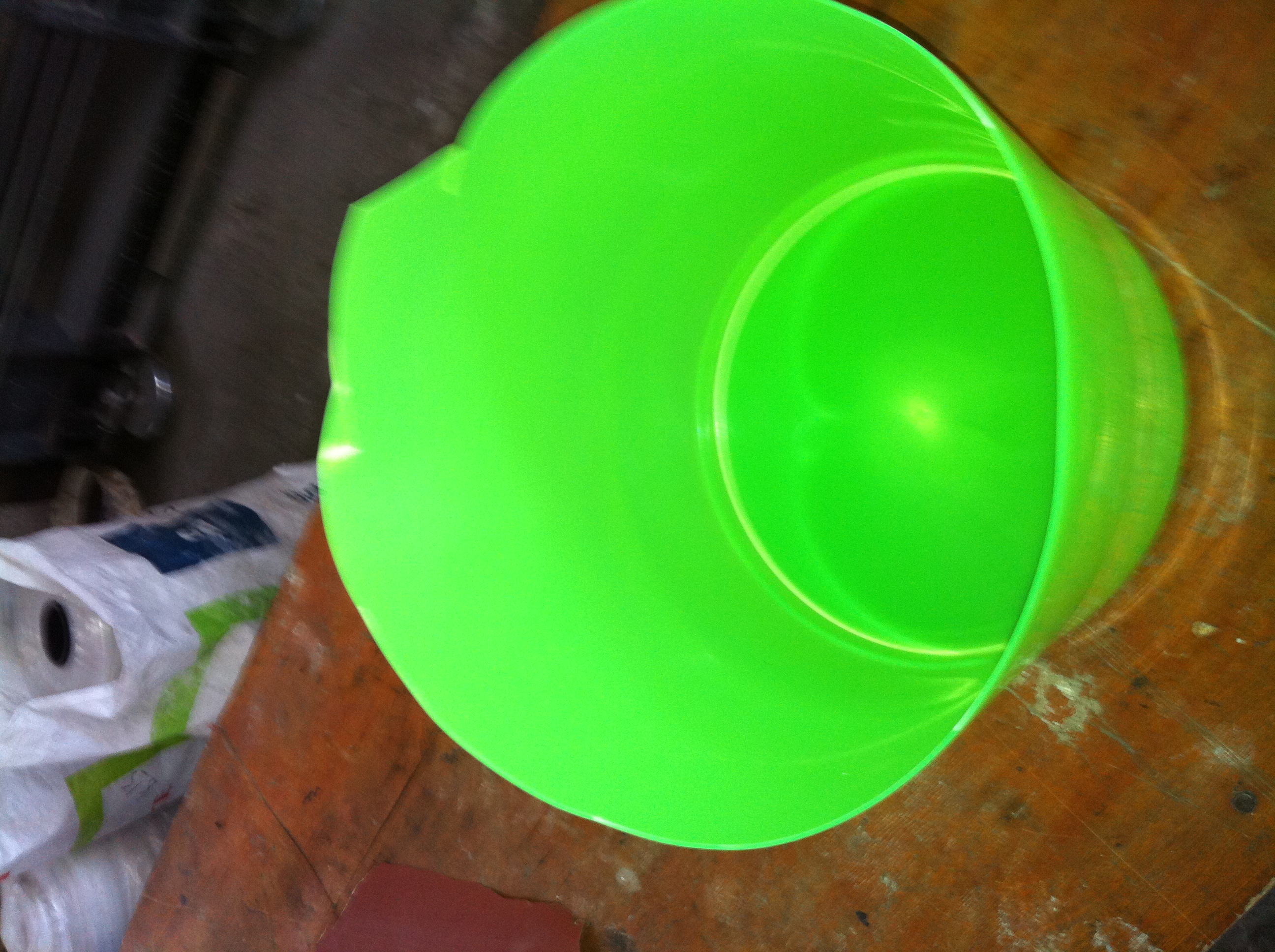В нашем случае такое ощущение, что масса распределяется как бы неравномерно. А с тонкой стороны ведро просвечивается, сразу видно. На ощупь тоже сразу чувствуется разница в толщине.